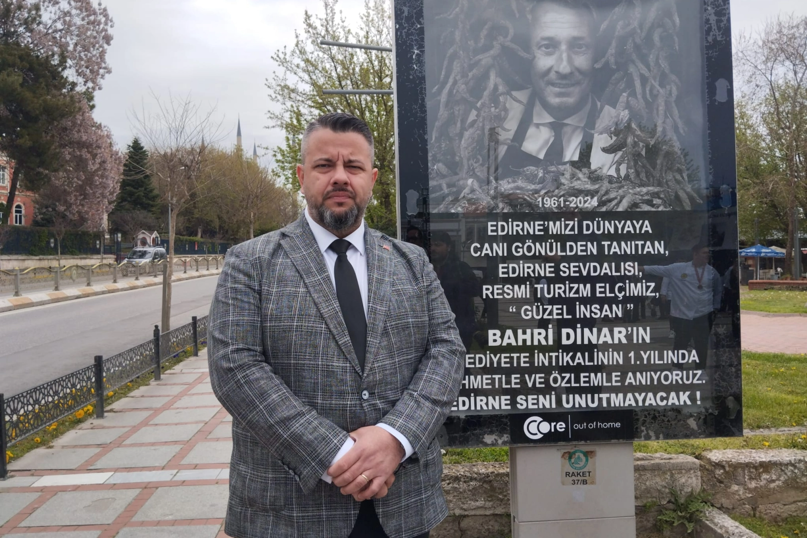 Edirne’nin tanıtımına büyük katkı sunan, geçen yıl Turizm Haftası’nda vefat eden Edirne’nin turizm elçisi Bahri Dinar için kurucusu olduğu Edirne Tanıtma ve Tava Ciğer Kalite Koruma Derneği kentte billboardlarda mesaj yayınladı.