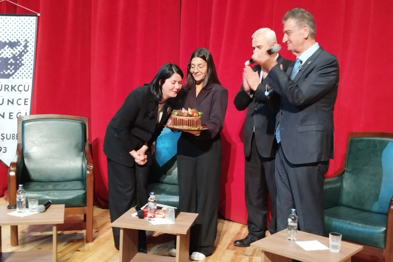 Konuşmaların ardından Edirne Belediye Başkanı Filiz Gencan Akın için sahneye doğum günü pastası getirilerek sürpriz yapıldı. Başkan Akın pastayı üflemesi sonrasında Genel Başkan Bozkurt’a Meriç köprüsünün yağlı boya tablosunu ve bir demet çiçek hediye etti. Genel Başkan Bozkurt da Başkan Akın’a yağlı boya Atatürk portresi hediye etti.