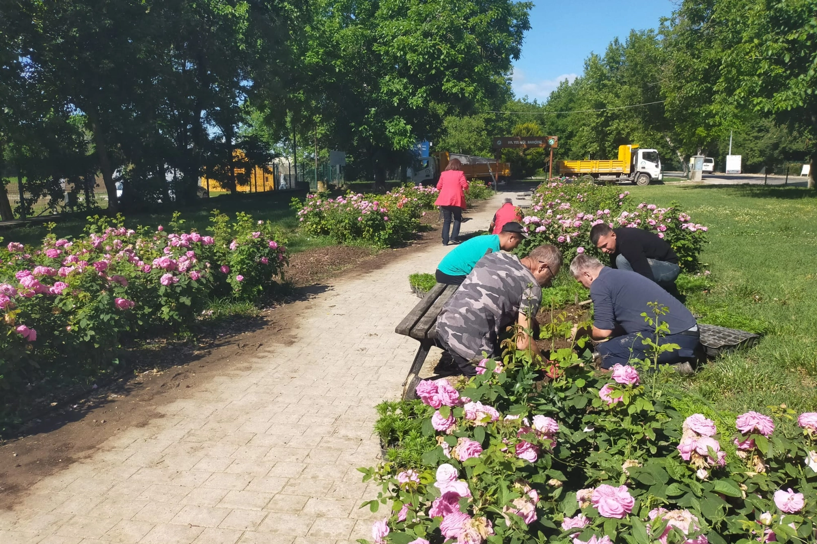 Edirne Belediyesi personelleri tarafından Karaağaç Mahallesi Lozan Caddesi'nde bulunan park ve yürüyüş yollarına rengarenk çiçekler ekildi.