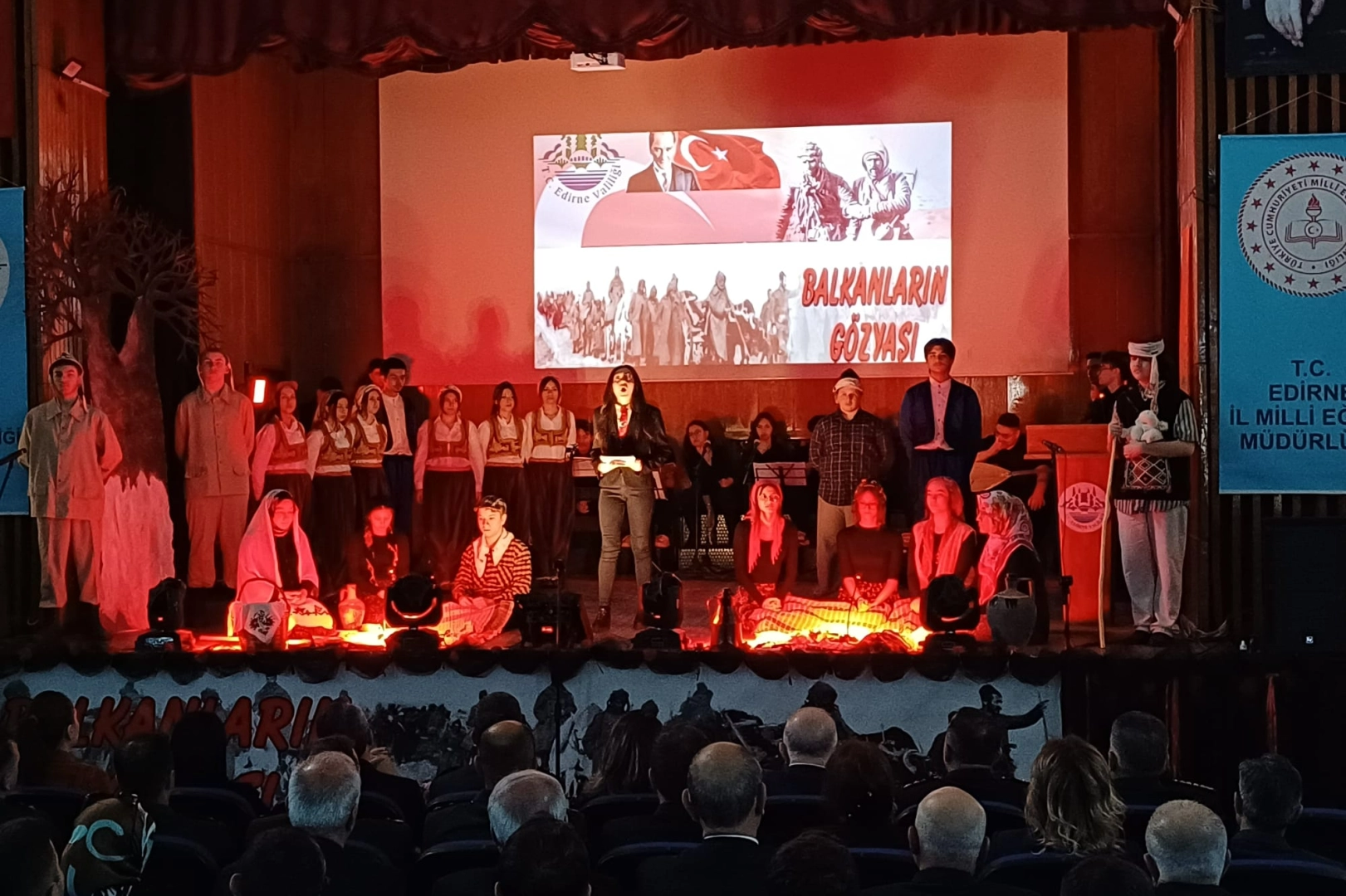 Konuşmanın ardından Yıldırım Beyazıt Anadolu Lisesi öğrencileri, "Balkanlarda Gözyaşı" adlı söz korosu sahnelendi.