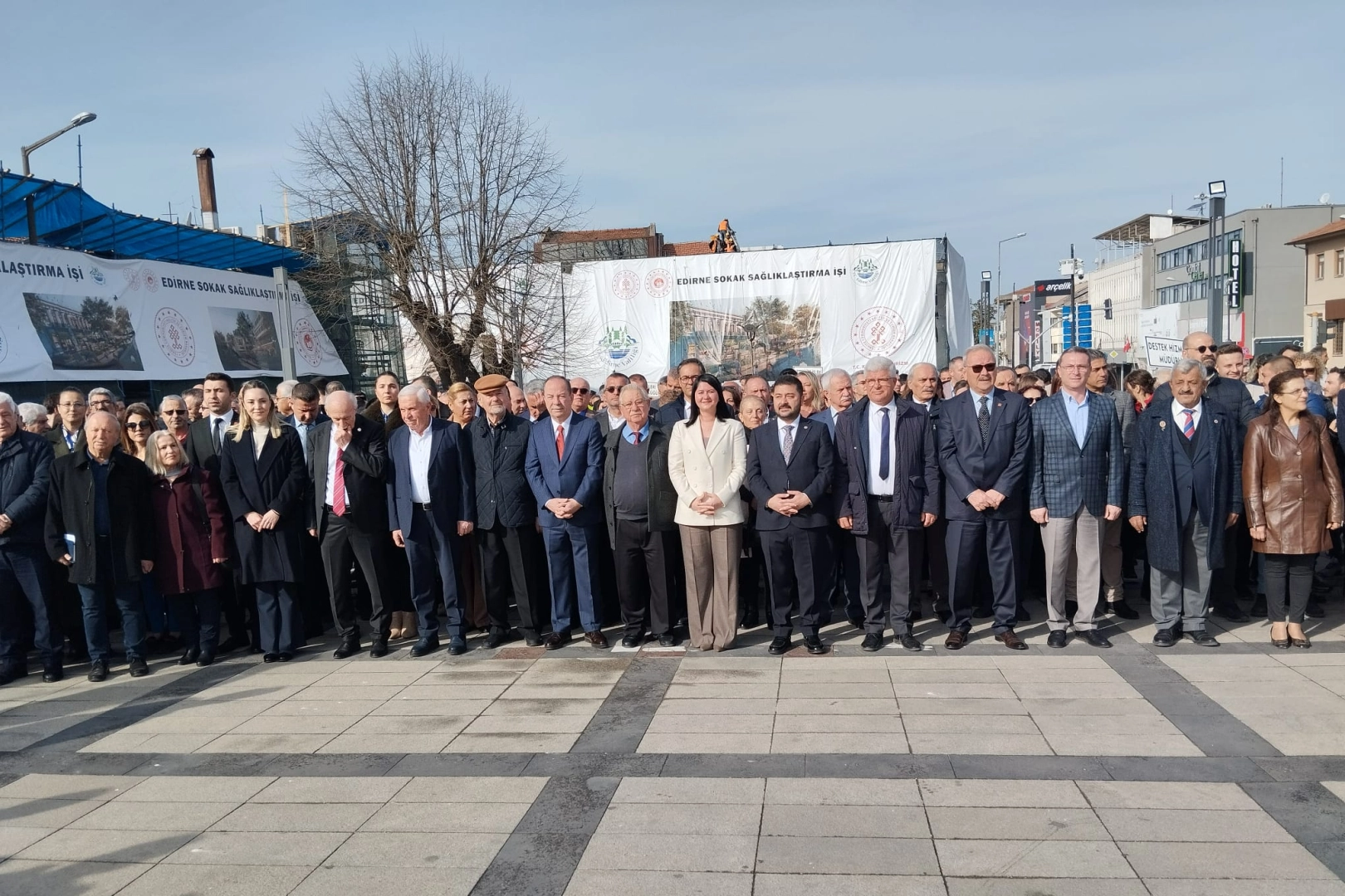 Belediye bandosu eşliğinde Atatürk anıtına gelen kortej, Belediye Başkanı Filiz Gencan Akın ve önceki dönem başkanların anıta çelenk sunması sonrası saygı duruşu ve istiklal marşını okudu. Anıttaki törende konuşan Edirne Belediye Başkanı Filiz Gencan Akın; 158 yıl önce kurulan Edirne Belediyesi’nin, bu kadim şehrin modernleşme yolundaki ilk adımlarından biri olduğunu belirterek; “Bu anlamlı günde, Edirne halkının takdiriyle belediye başkanı olarak bu tarihi anı yaşamak benim için tarifsiz bir mutluluk. Edirne Belediyesi'nin ilk kadın belediye başkanı olarak bu tarihi yaşatmanın, Edirne'ye hizmet etmenin ve geleceğe daha güçlü bir şehir bırakmanın sorumluluğunu omuzlarımda hissediyorum. Bu an, yalnızca benim için değil, Edirne'nin tarihinde yeni bir sayfanın açıldığı, kadınların her alanda var olabileceğini bir kez daha gösteren bir dönüm noktasıdır. Bugün kadınların yönetimde söz sahibi olmasının, Cumhuriyetimizin bizlere kazandırdığı eşitlik ve demokrasi ruhunun bir İlk kadın belediye başkanı olarak, bu görevi yalnızca yansımasını da yaşıyoruz. Bir makam değil, halkımızla birlikte yürünecek büyük bir sorumluluk olarak görüyorum. Bu özel günü taçlandırmak için, biraz önce kıymetli çalışma arkadaşlarımla ve halkımızın da katılımıyla belediye binamızdan Atatürk Anıtı'na coşkulu bir yürüyüş gerçekleştirdik. Bu yürüyüş, Edirne'nin geçmişten geleceğe uzanan köklü belediyecilik anlayışının, birlik ve beraberliğimizin güçlü bir simgesidir. İşte bizler, bu aziz toprakların evlatları olarak, Edirne'nin görkemli tarihine yakışır bir şekilde çalışmaya, üretmeye ve bu güzel şehri daha da ileriye taşımaya ant içtik. Edirne için, halkımız için, Atatürk'ün mirasına sahip çıkmak için yürüdük” dedi.