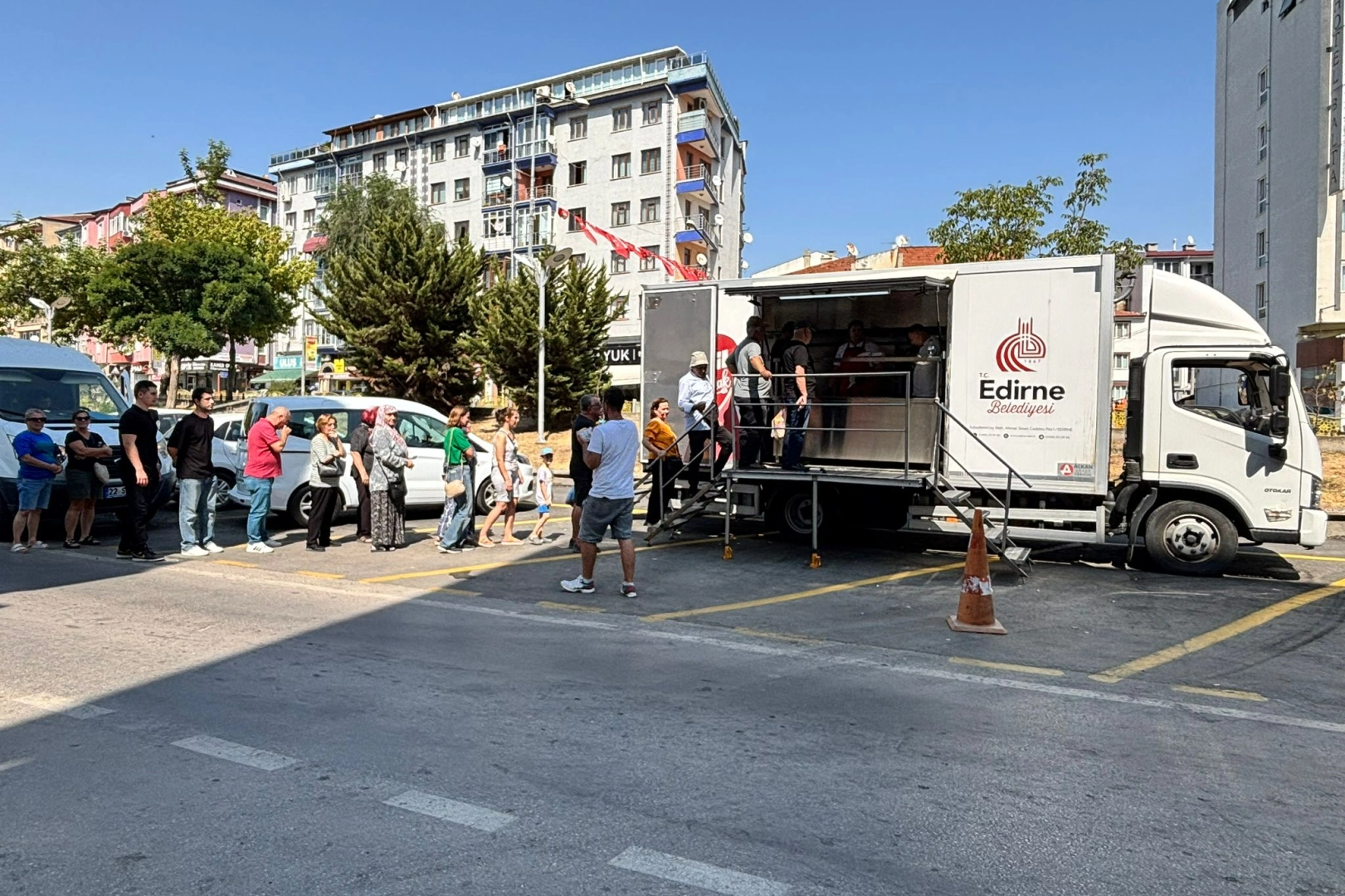 Edirne Belediyesi, Ayşekadın semtinde bulunan Kadı Bedrettin Camii önünde düzenlediği etkinlikte vatandaşlara lokma ikramında bulundu. Cuma namazı çıkışıyla birlikte artan yoğunluk nedeniyle ikram aracı önünde zaman zaman uzun kuyruklar oluştu.