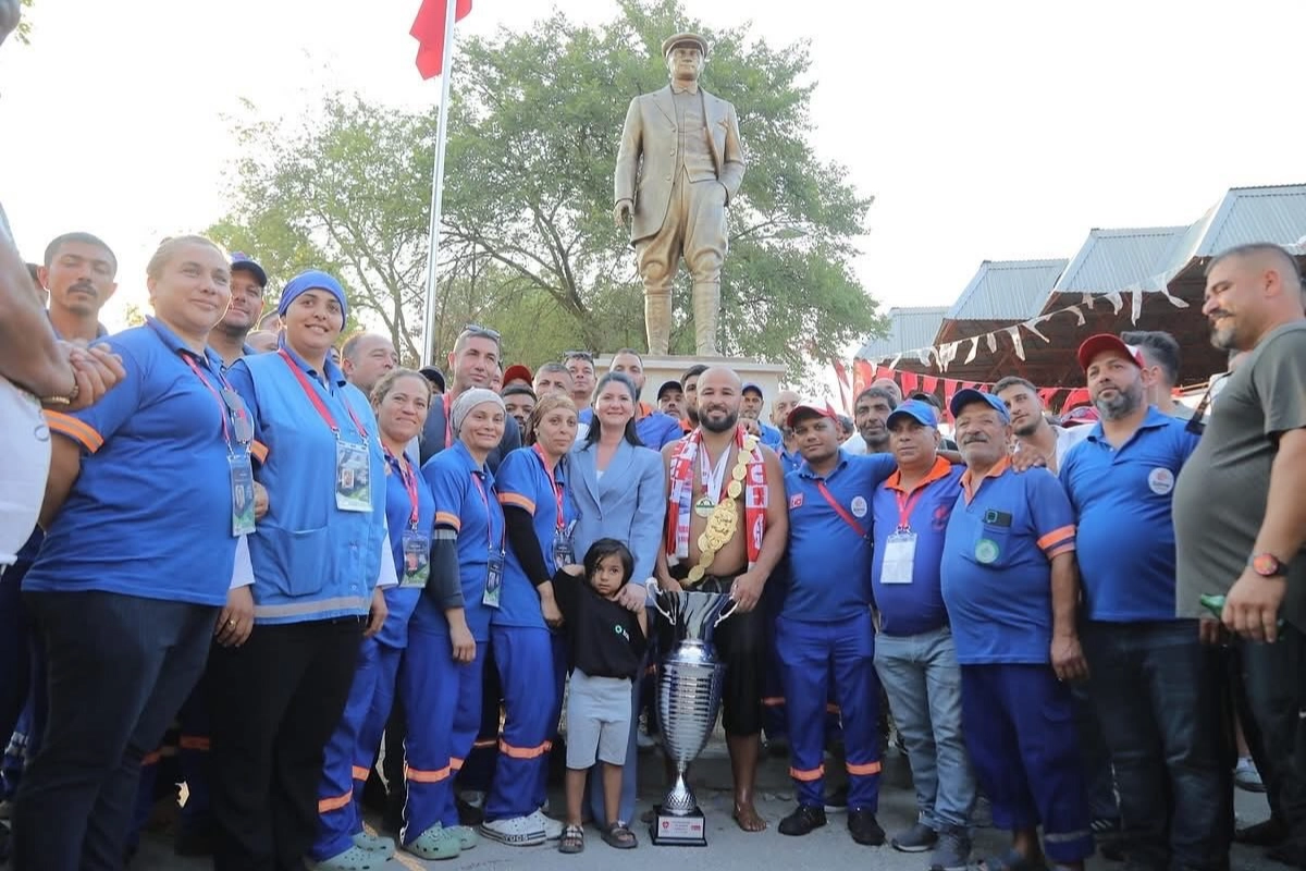 Edirne’de yapılan 664’üncü Tarihi Kırkpınar Yağlı Güreşlerinin finalinde Feyzullah Aktürk’ü yenerek Türkiye Başpehlivanı olan Antalyalı Orhan Okulu, güreş alanından Edirne kent merkezine giderken kendisinden fotoğraf çekilme ricasında bulunan Edirne Belediyesi temizlik işçilerinin bu isteğini yerine getirdi.