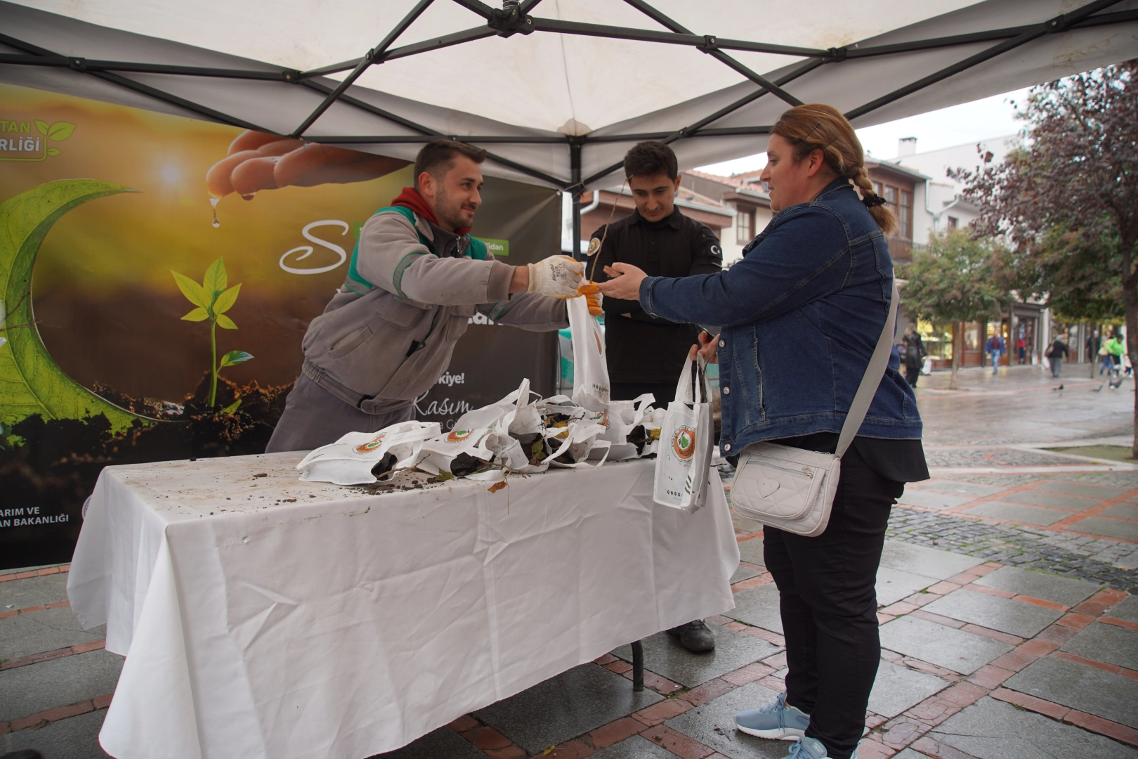 Edirne Orman İşletme Müdürlüğünce Saraçlar Caddesi'nde kurulan stantta vatandaşlara ıhlamur fidanı hediye edildi.