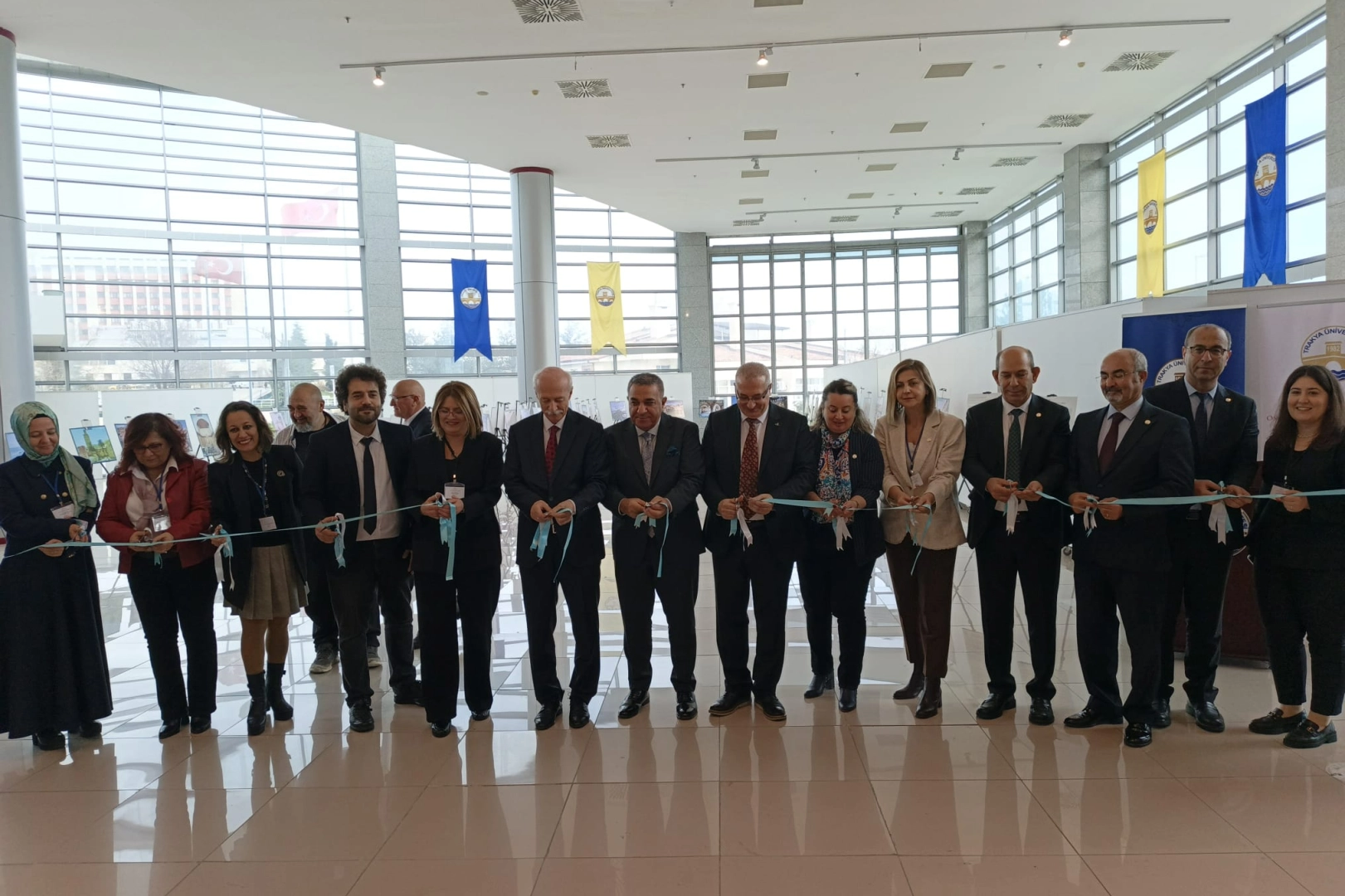 Balkan Kongre Merkezi Fuaye Salonu'nda düzenlenen sergiye Edirne Vali Yardımcısı Şevket Atlı, TÜ Rektörü Prof. Dr. Mustafa Hatipler, OSMER Müdürü ve Sempozyum Başkanı Dr. Öğr. Üyesi Tülay Canıtez, akademisyenler ve öğrenciler katıldı.