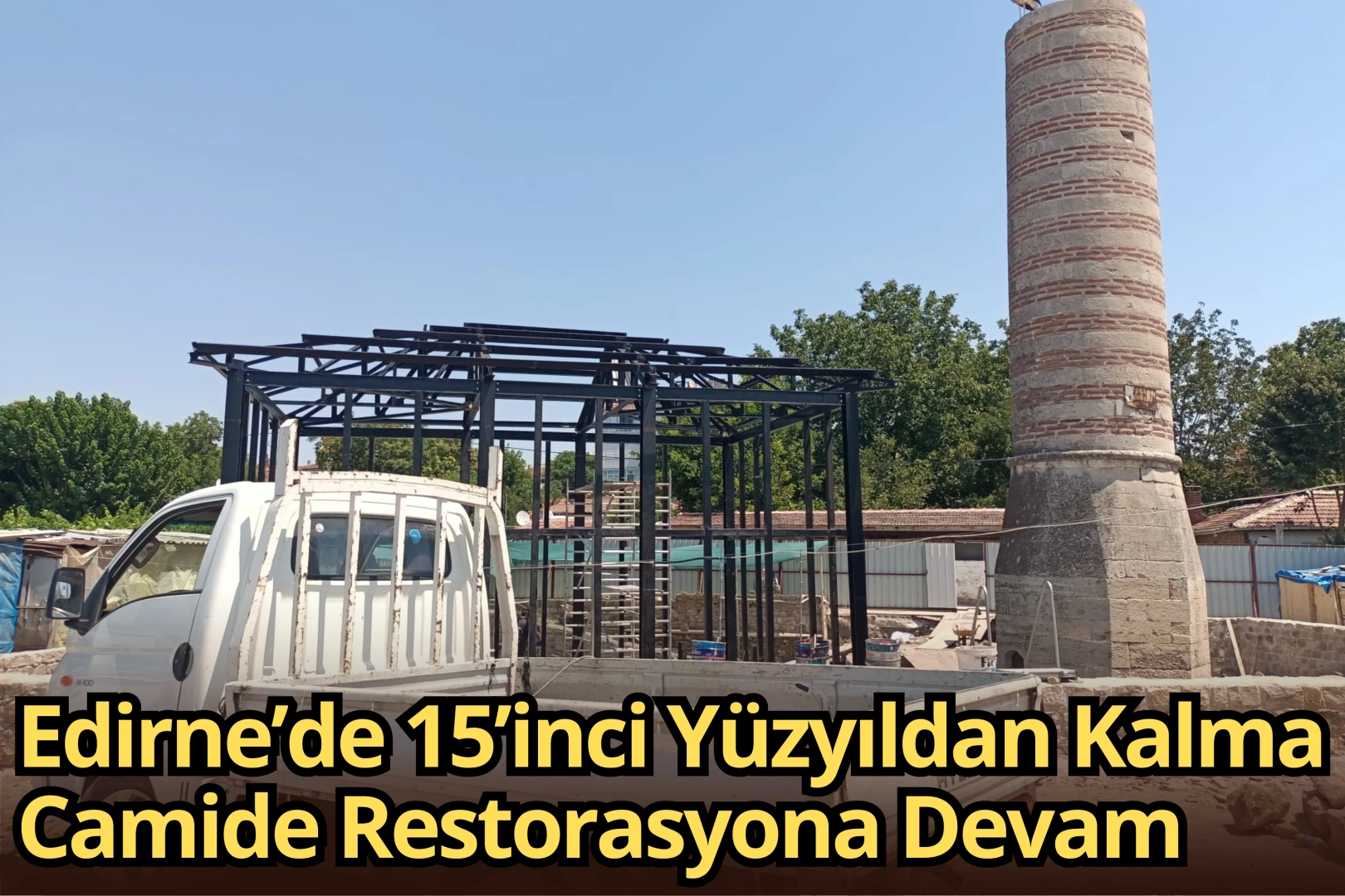 Tunca nehri kenarında, 15’inci yüzyıl eserlerinden biri olan cami ve yanındaki tekkenin ihyası için başlatılan çalışmalar kapsamında yapıların inşa edilmesi için iskelet oluşturuldu. Kazı çalışmalarında ortaya çıkarılan kalıntılarla aslında uygun şekilde inşa edilmesi hedefiyle ekipler çalışmalarını gerçekleştiriyor.
