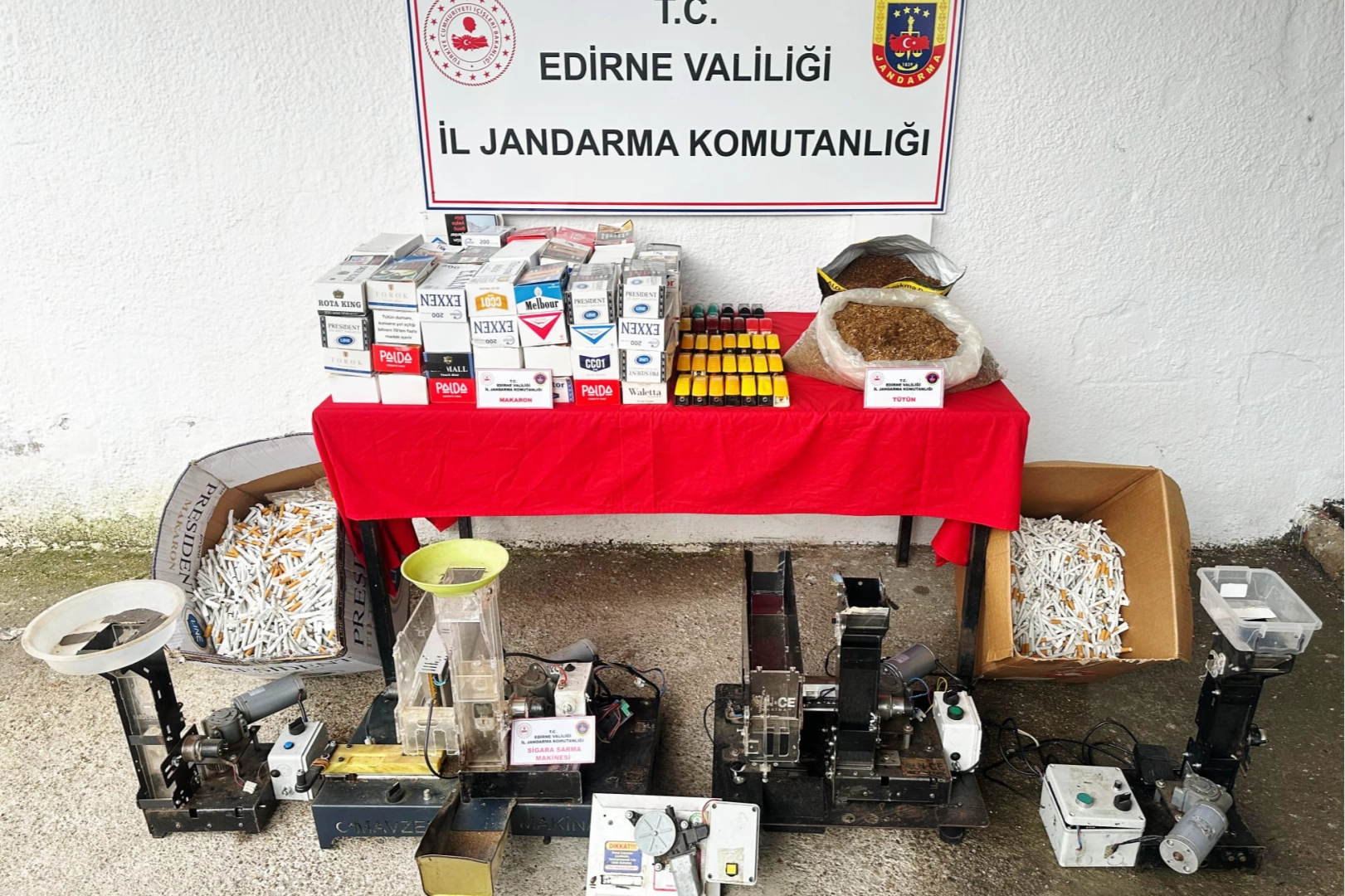 Ekiplerce H.B'nin ikametinde yapılan aramada, 26 bin 600 makaron, 39 tütün sarma aparatı ve 3 kilogram tütün ele geçirildi.