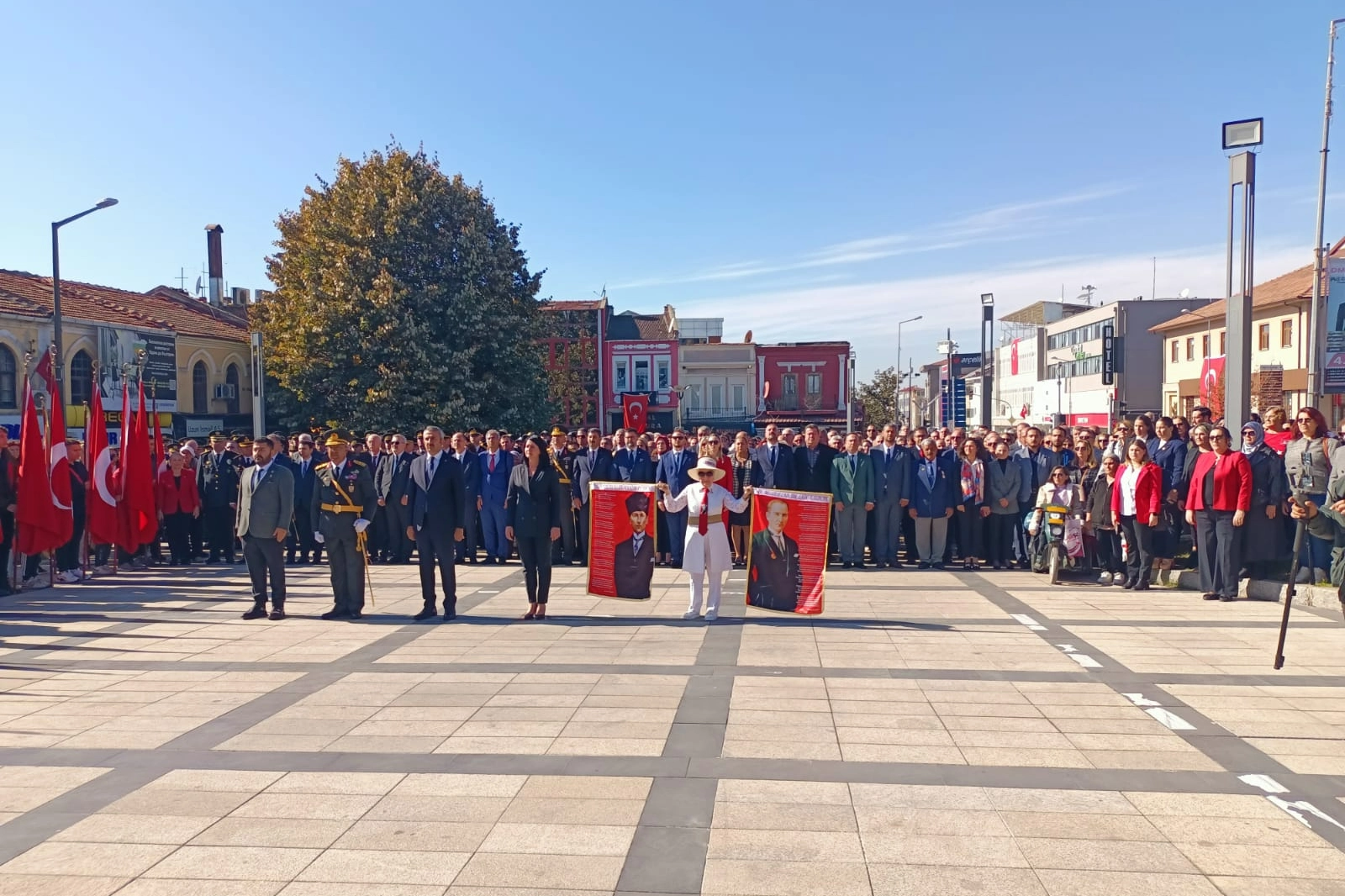 Cumhuriyet Bayramı kutlamaları kapsamında bugün Atatürk anıtında çelenk töreni düzenlendi. Törene; Edirne Valisi Yunus Sezer, Cumhuriyet Halk Partisi (CHP) Edirne Milletvekili Ahmet Baran Yazgan, Garnizon Komutanı Tuğgeneral Yüksel Kolcu, Belediye Başkanı Filiz Gencan Akın, Cumhuriyet Başsavcısı Mustafa Çakmak, Trakya Üniversitesi Rektörü Prof. Dr. Mustafa Hatipler, Baro Başkanı Gökhan Karakoç, kurum müdürleri, siyasi parti temsilcileri, oda ve sivil toplum örgütü temsilcileri ve öğrenciler katıldı.
