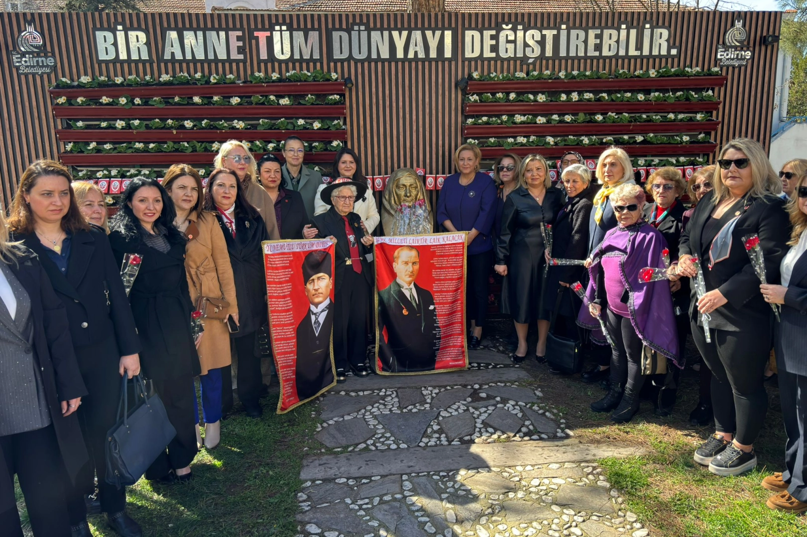 Edirne’de 8 Mart Dünya Kadınlar Günü kapsamında düzenlenen etkinlik, Edirne Belediye Bandosu eşliğinde İstiklal Marşı’nın okunması ile başladı. Ardından, Zübeyde Hanım heykeline karanfil bırakıldı.