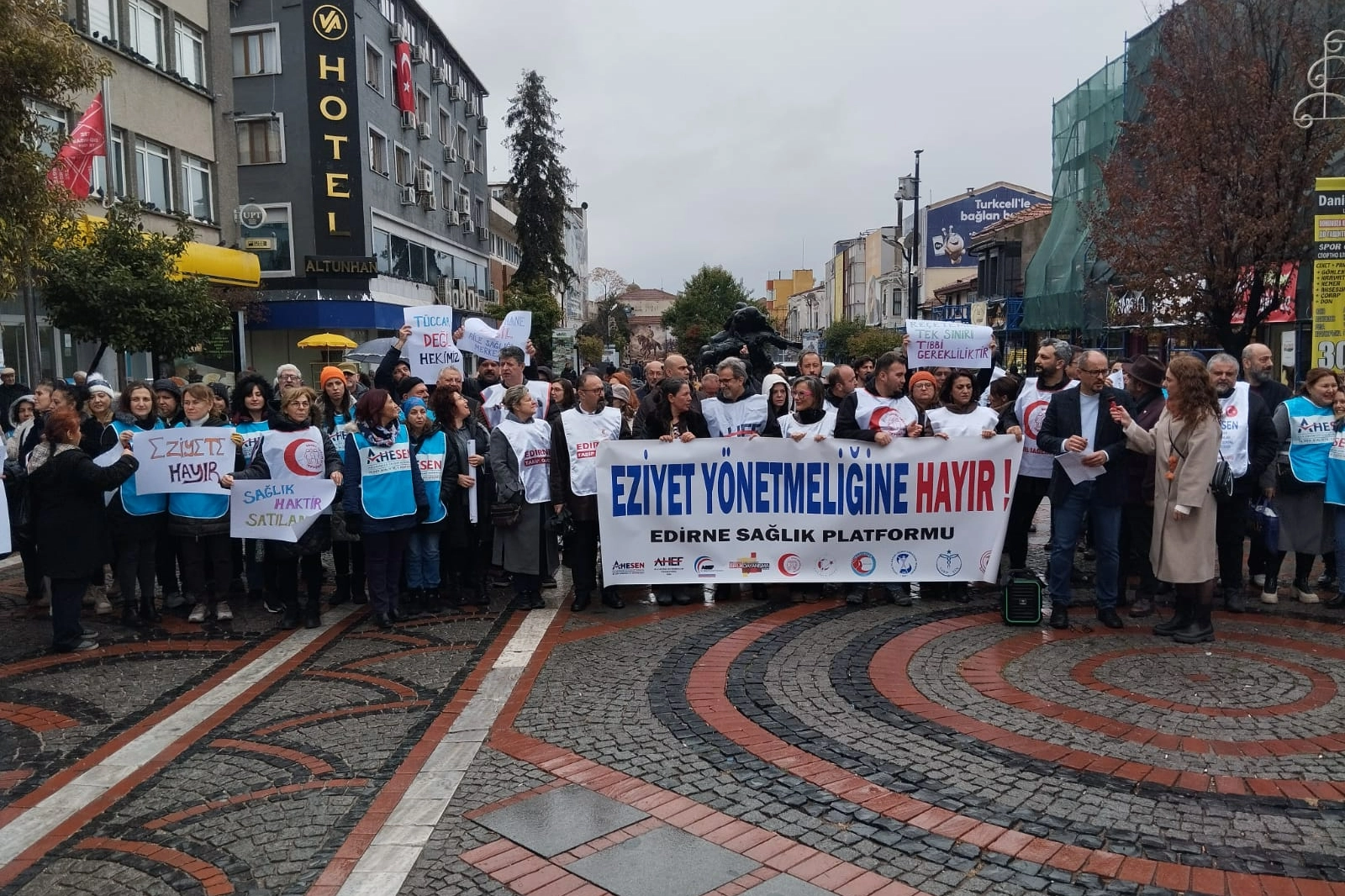 Edirne Aile Hekimleri Odası Başkanı Taylan Önal’ın okuduğu basın açıklamasında “Taleplerimiz gerçekleşene kadar çeşitli eylem ve etkinliklerle halkımızın sağlığı ve haklarımız için sağlık otoritesini harekete geçme konusunda zorlamaya devam edeceğimizi, sonuç alıncaya kadar vazgeçmeyeceğimizi tüm kamuoyuna bildiriyoruz” denilerek şu ifadelere yer verildi; “Yapılan düzenlemelerin hiçbiri halk ve hizmet sunan emekçiler açısından kalıcı çözüm getirmiyor. Aile Sağlığı Merkezlerindeki sağlık hizmetleri ücretli olma yolunda hızla ilerliyor. Resmi Gazetede Ekim ayında yayınlanan Aile Hekimliği Sözleşme ve Ödeme Yönetmeliğinin halkın sağlığını, hekimlerin ve sağlık emekçilerinin özlük hakları ve çalışma koşullarını iyileştirmek bir yana yaşanmakta olan sorunları daha da derinleştireceğini hemen her kademeden bakanlık yetkililerine iletmiş ve 5 temel talebimizi kamuoyuna açıklamıştık. Kasım ayının ilk haftasında bu yönetmelik geri çekilinceye kadar uyarı niteliği taşıyan üç günlük iş bırakma eylemini gerçekleştirmiştik. Taleplerimiz yerine getirilmediği ve çözüme yönelik kararlar alınmadığı takdirde alanda örgütlü sağlık emek-meslek örgütleri ile birlikte 2- 6 Aralık 2024 tarihleri arasında 5 günlük iş bırakma kararını da kamuoyuna duyurmuştuk. Bizler birinci basamakta her gün emek veren hekimler, sağlık çalışanları ve onların örgütleri olarak halkın sağlık hakkına erişimini engelleyen, hekimlerin mesleki özerkliğini yok eden ve sağlık emekçilerinin iş ve gelir güvencesini ortadan kaldıran bu yönetmeliğin geri çekilmesini beklerken, TBMM’ye 25 Kasım 2024 günü bir kanun teklifi sunuldu. 28 Kasım’da komisyonda görüşülerek değişiklik yapılmaksızın Genel Kurula sevk edilen Sosyal Sigortalar ve Genel Sağlık Sigortası Kanununda ve Bazı Kanunlarda Değişiklik Yapılmasına Dair Kanun Teklifi ile, 5258 sayılı Aile Hekimliği Kanununun 5’inci maddesi ve 5510 sayılı kanunun 68’inci maddesinde değişiklikler yapılmaktadır. Baştan söylemek istiyoruz; bu değişiklikler TBMM’de yasalaşacak olursa birinci basamak sağlık hizmetleri piyasa dinamiklerine tam olarak teslim edilecektir” dedi.