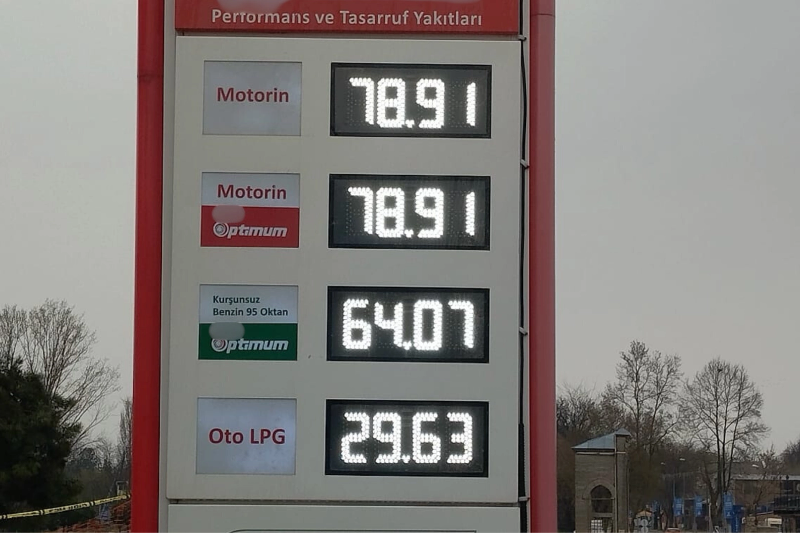 Edirne’de gece yarısından itibaren geçerli olmak üzere motorine yüzde 10,67 benzine ise yüzde 1,87 zam geldi. Gelen zam ile birlikte motorin fiyatı 6,77 lira artarak 78,91 TL oldu. Benzin ise yüzde 1,87’lik artış ile 64,07 TL oldu.