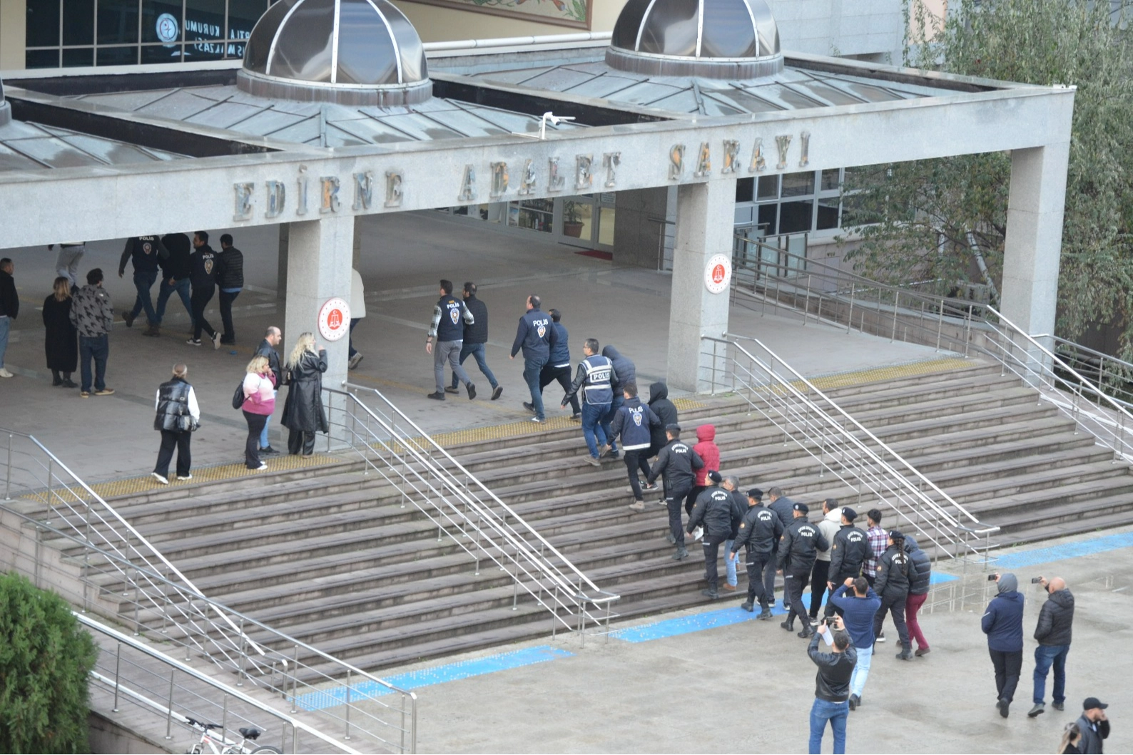 Edirne İl Emniyet Müdürlüğü’nde işlemleri tamamlanan şüpheliler, Edirne Adliyesine sevk edildi. Şüphelilerin adliyedeki işlemleri sürüyor.