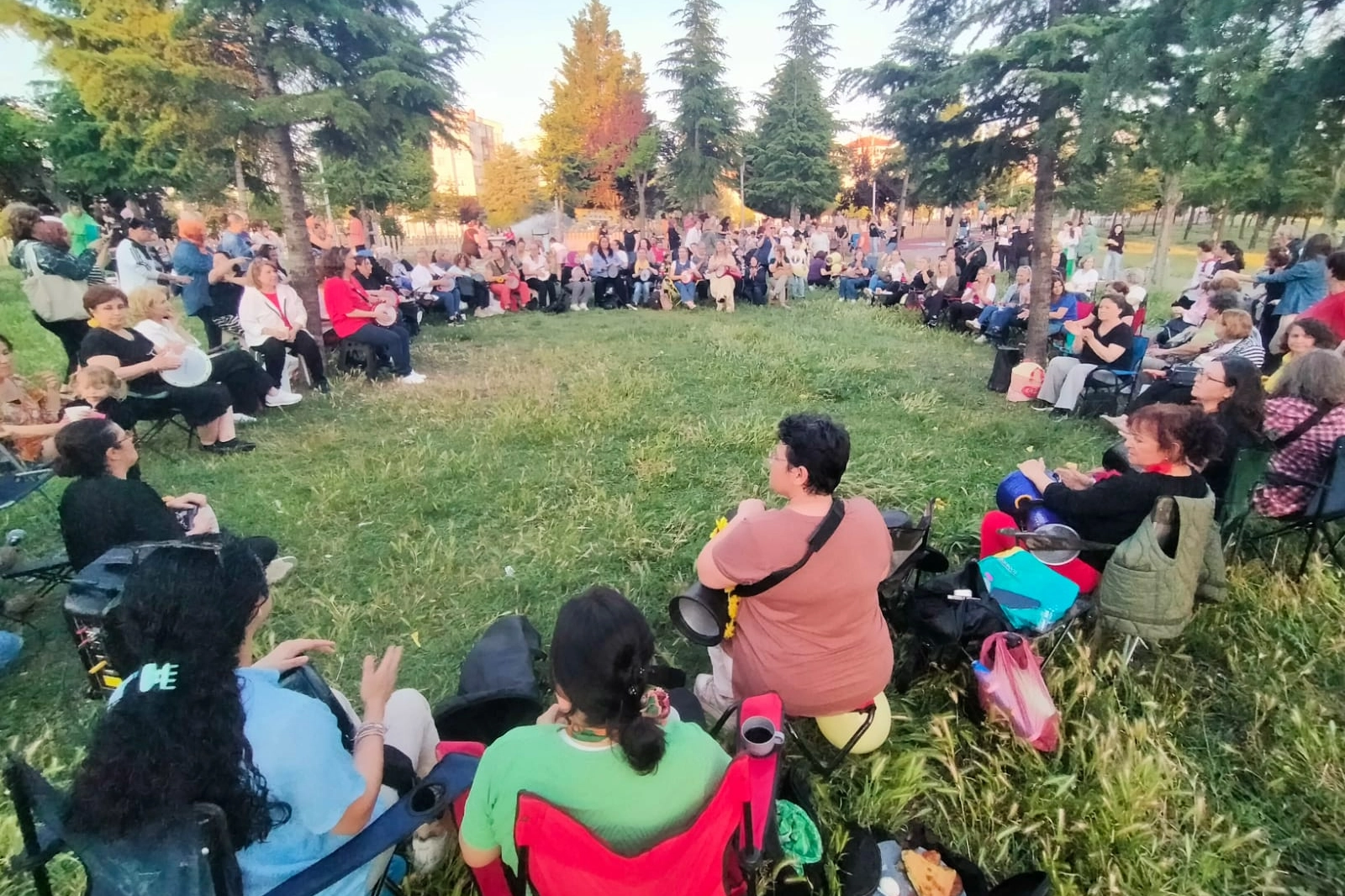 Edirne'de bulunan Gölet Parkı'nda buluşan onlarca kadın, piknik yapıp darbukalarıyla müzik çaldılar, ardından balonları gökyüzüne uçurdular.