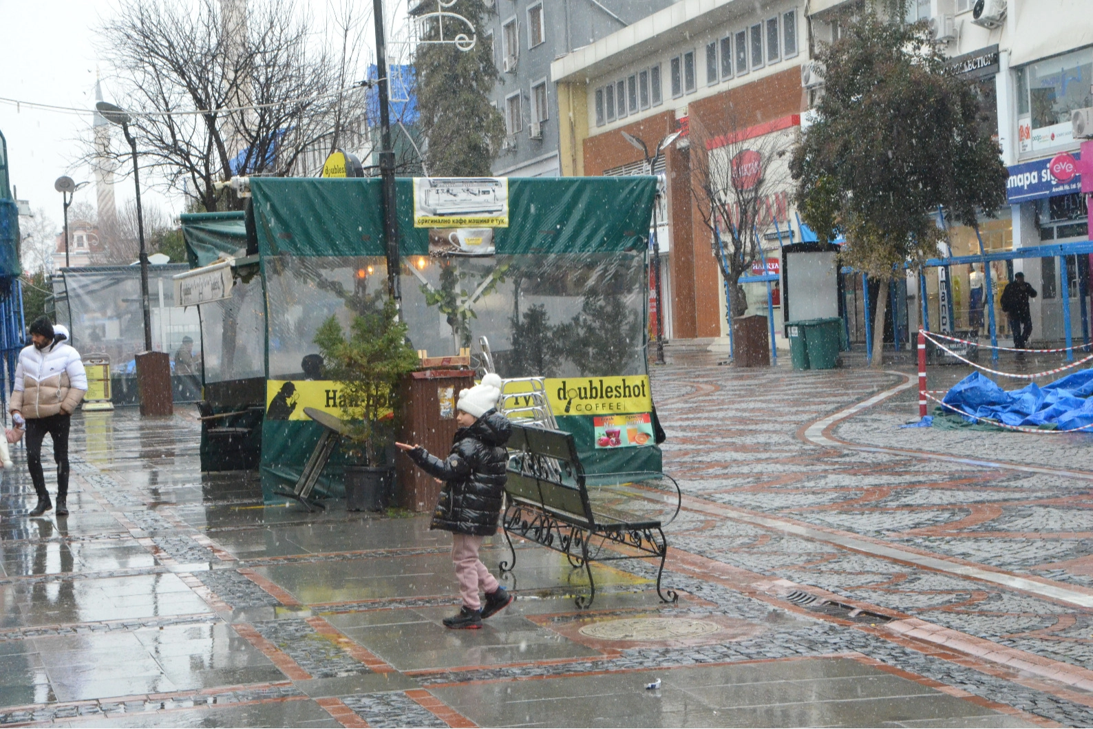 Edirne’de hava sıcaklığının düşmesiyle birlikte beklenen kar yağışı saat 12.00’de başladı. Kent merkezinde sabah saatlerinden itibaren yağmur çiselemesi, yerini kar yağışına bıraktı.