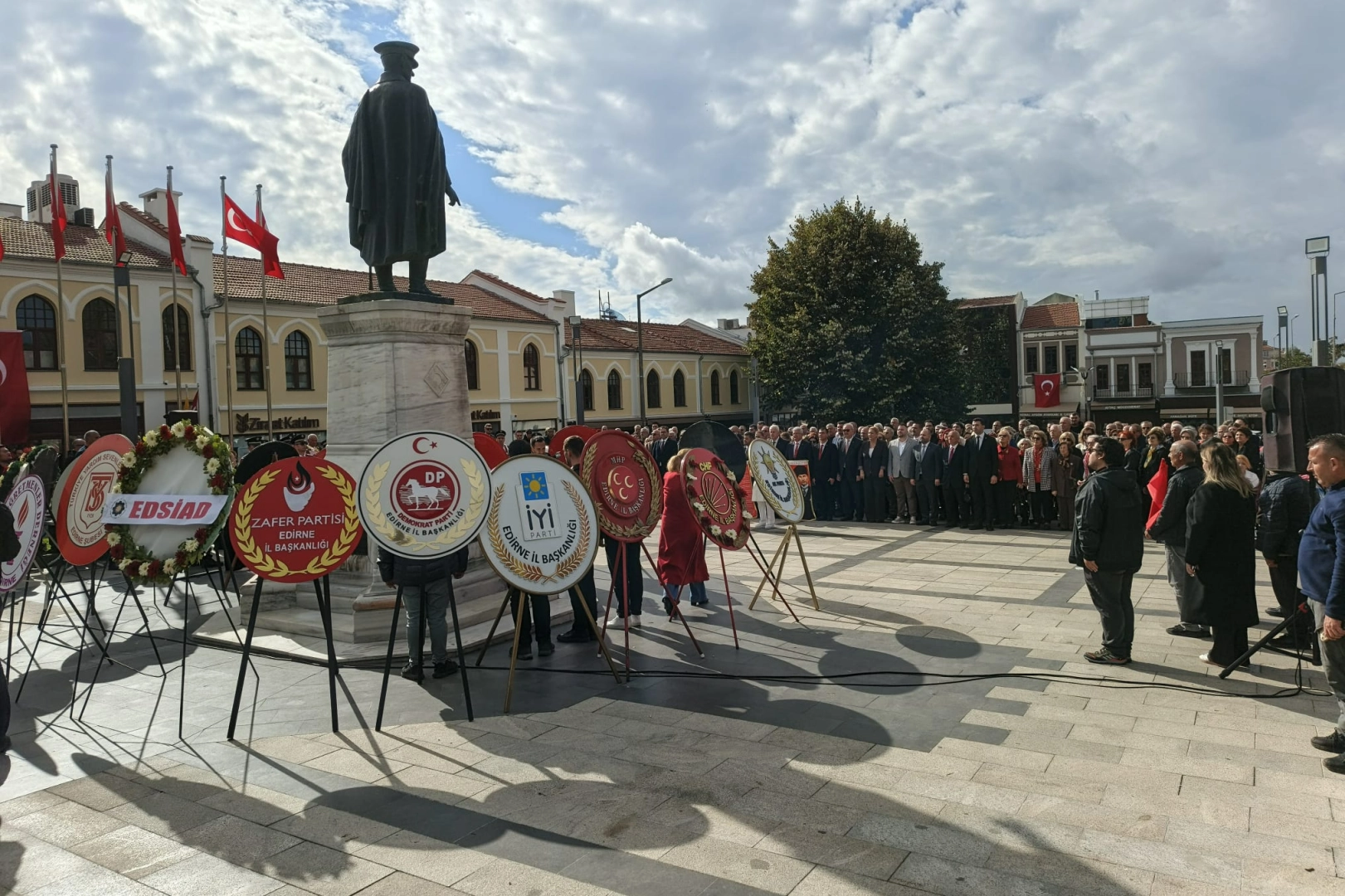 CHP Edirne İl Örgütü ile sivil toplum örgütlerinin çelenklerinin Atatürk anıtına sunulması ile başlayan tören, Türkiye Cumhuriyeti’nin kurucusu Mustafa Kemal Atatürk, silah arkadaşları ve tüm şehitler anısına 1 dakikalık saygı duruşu ve İstiklal Marşı’nın okunması ile devam etti. Törende, CHP Edirne İl Başkanı Yücel Balkanlı, günün anlam ve önemini belirten konuşmayı yaptı.