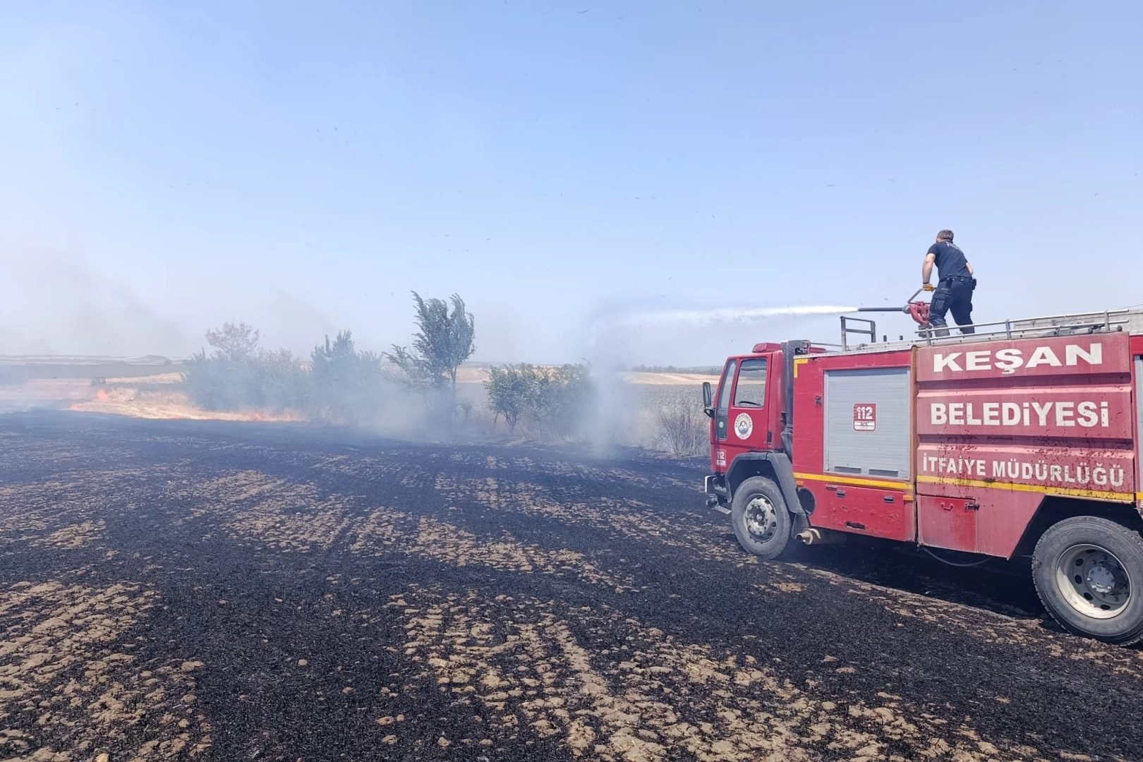 İzzetiye Mahallesi'nde hasat edilmiş buğday tarlasında henüz belirlenemeyen nedenle yangın çıktı.