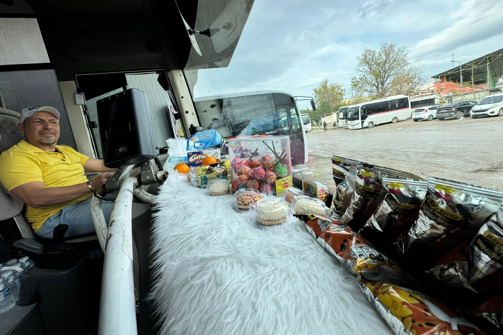 Her gün aracına binmeden eksik meyve ve şekerlemeleri tedarik edip torpidonun üstüne dizen Coşkun, yolcuların en sevdiği şoför olarak bilinmeye başladı.