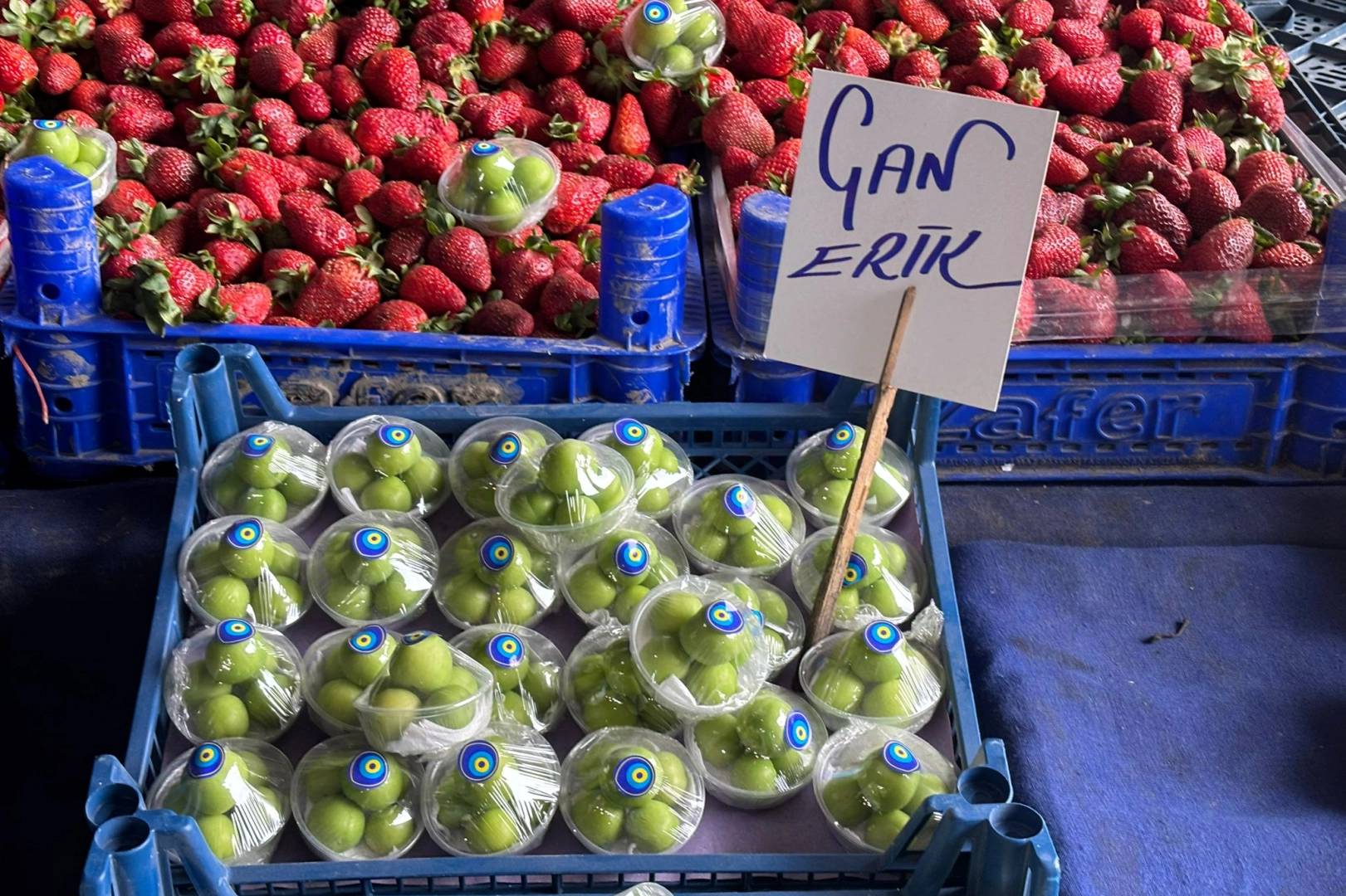 Edirne’de erken sezon erikleri pazarda 5’li paketler hâlinde satışa sunuluyor. 5 adet erik 150 TL’den satılıyor yani tanesi 30 TL.