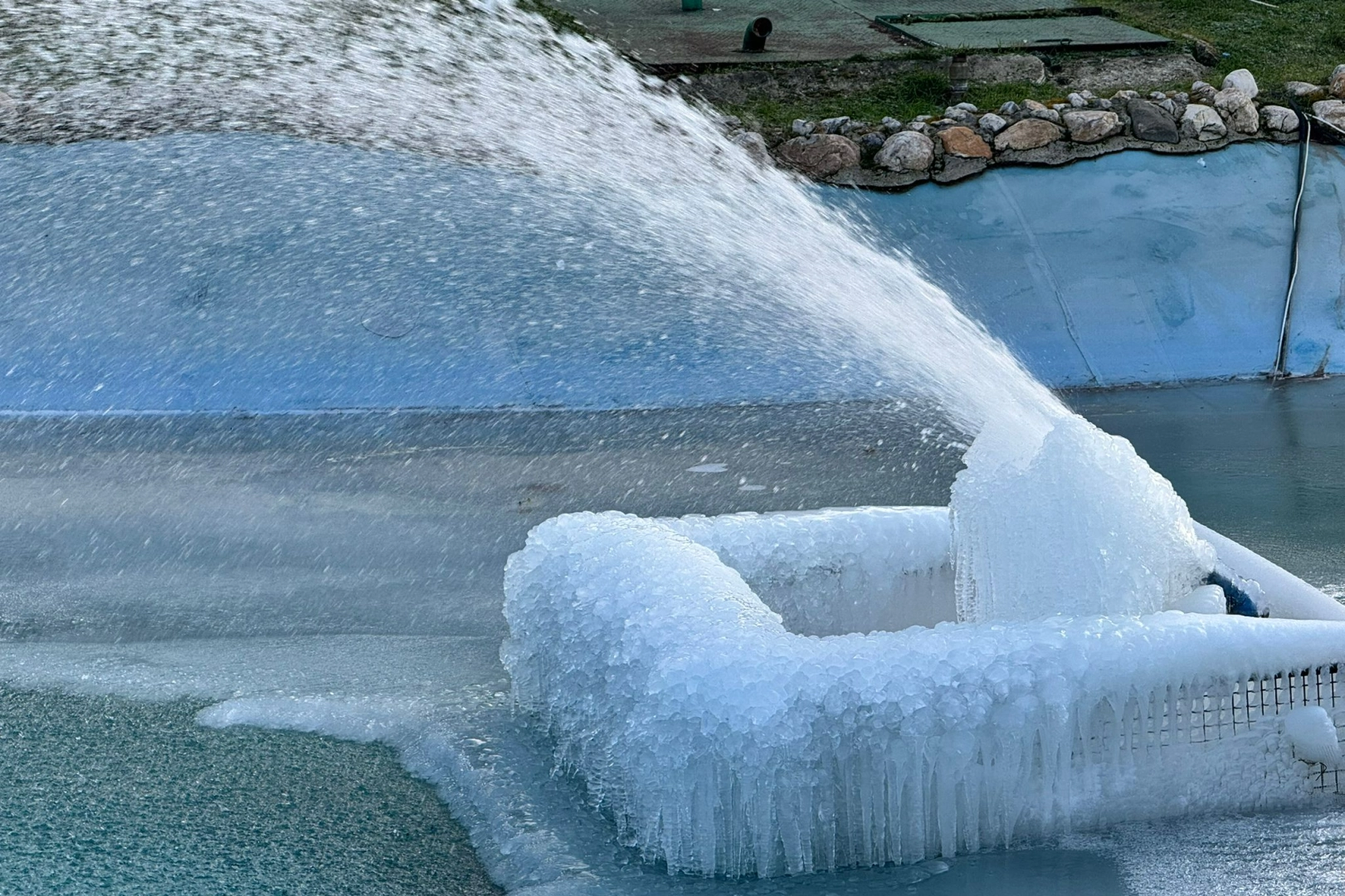 Edirne’de gece saatlerinde -5 dereceye kadar düşen hava sıcaklığı, kentteki su birikintilerini ve süs havuzlarını dondurdu. Barış Parkı içerisinde bulunan suni göletin yüzeyi tamamen buz tuttu. fıskiyelerden akan sular, dondurucu ayazın etkisiyle buz sarkıtlarına dönüştü. Ortaya çıkan bu manzara soğuğun şiddetini gözler önüne seriyor.