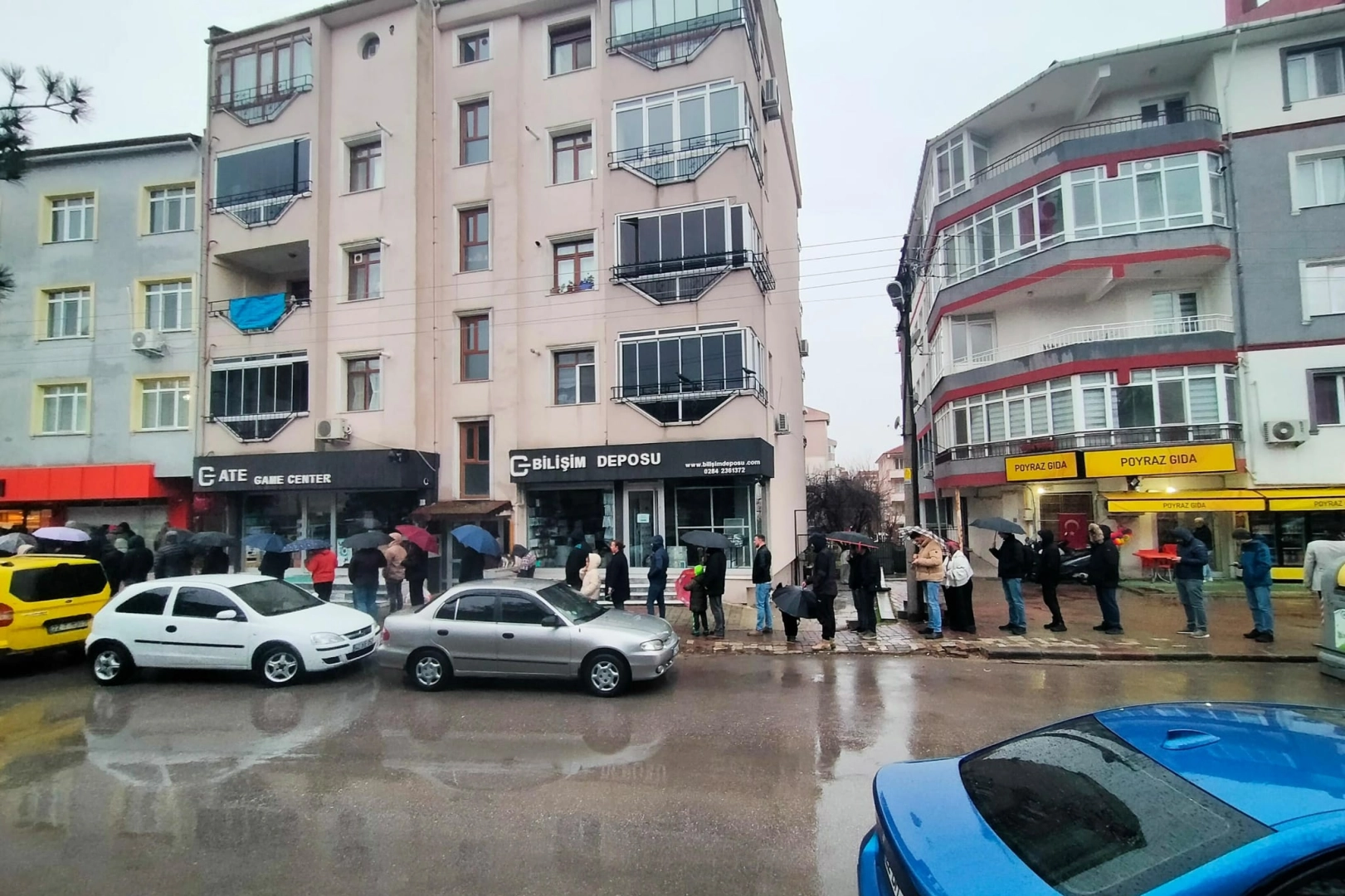 Yanlarında getirdikleri şemsiyeleriyle yağmurun altında dakikalarca pide sırası bekleyen vatandaşlar, yağmur engeli de tanımadı.