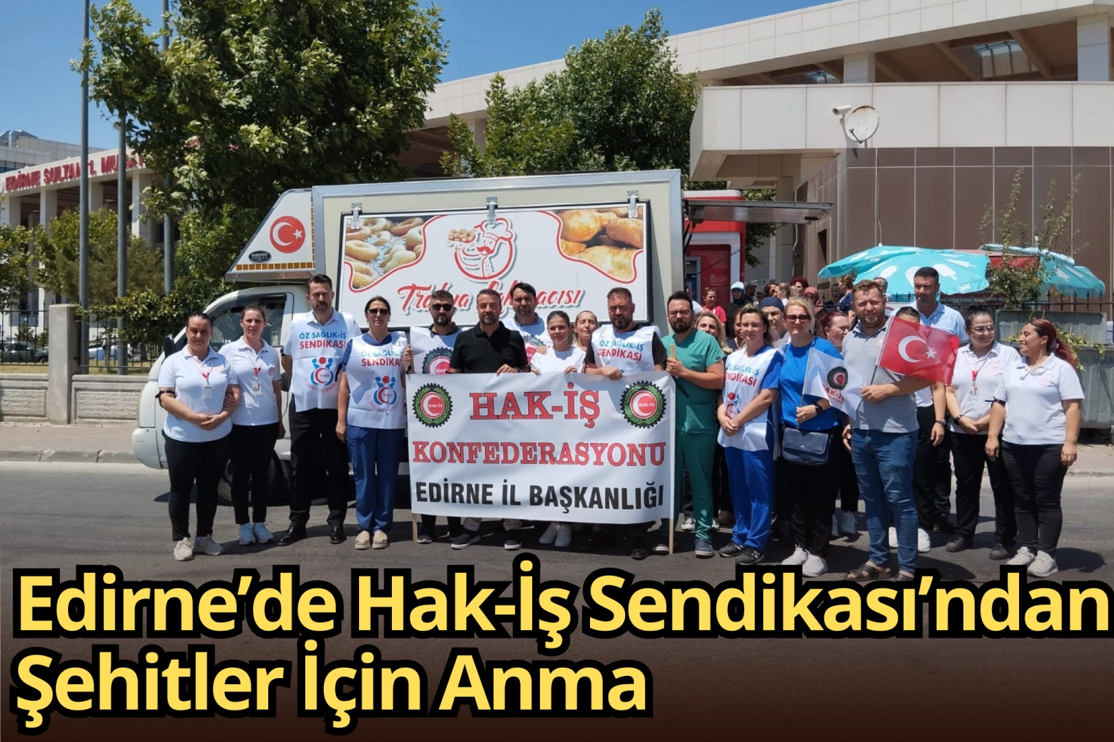Hak- İş Edirne İl Başkanı ve Öz Sağlık-İş Edirne Şube Başkanı Emre Promet burada yaptığı açıklamada 2 gün boyunca kollarına siyah kurdele bağlayarak anma düzenleyeceklerini belirterek “Ülkemizi yasa boğan şehit haberlerinin ardından aziz şehitlerimiz anıyor, şehit aileleri ile dayanışma duygularımızı ifade ediyoruz. Hak-İş olarak, ülkemizin ve milletimizin huzuru, devletimizin bütünlüğü için geçmişten bu yana hain terör örgütlerine karşı verilen onurlu mücadeleyi destekliyor ve şükranlarımızı sunuyoruz. Ülkemizin bekasına, milletimizin huzuruna kasteden her türlü terör girişiminin karşısında olmaya; barış, kardeşlik ve demokratik kazanımlar temelinde inşa edilen daha güçlü bir Türkiye'nin yanında yer almaya devam ediyoruz. Terörsüz Türkiye yolunda atılan tarihi adımı ve olumlu gelişmeleri destekliyor, bu sürecin başarıyla tamamlanmasını temenni ediyoruz. 81 ilde kamuda örgütlü olduğumuz işyerlerinde öğle molaları ve mesai bitiminde şehitlerimizin anısına saygı duruşunda bulunarak, İstiklal marşı okuyacak ve şehitlerimizin aziz ruhları için Kuran-ı Kerim Tilavetleri gerçekleştireceğiz. Hak-İş Konfederasyonu olarak, başta ülkemizin bekası için mücadele ederken şehit olan kahraman askerlerimiz olmak üzere, ülkemizin dört bir yanında orman yangınları ile mücadele ederken şehit olan orman emekçisi kardeşlerimize, iş kazalarında ve meslek hastalıklarında hayatını kaybeden emekçilerimize yüce Allah'tan rahmet, yakınlarına ve aziz milletimize baş sağlığı diliyoruz” dedi.