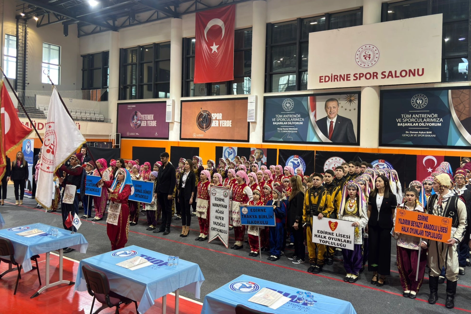 Edirne’de Okul Sporları Federasyonu ve Türkiye Halk Oyunları Federasyonu tarafından düzenlenen Edirne Okul Sporları il Birinciliği ve Kulüplerarası İl Birinciliği karşılaşmaları Edirne Spor Salonu’nda başladı.