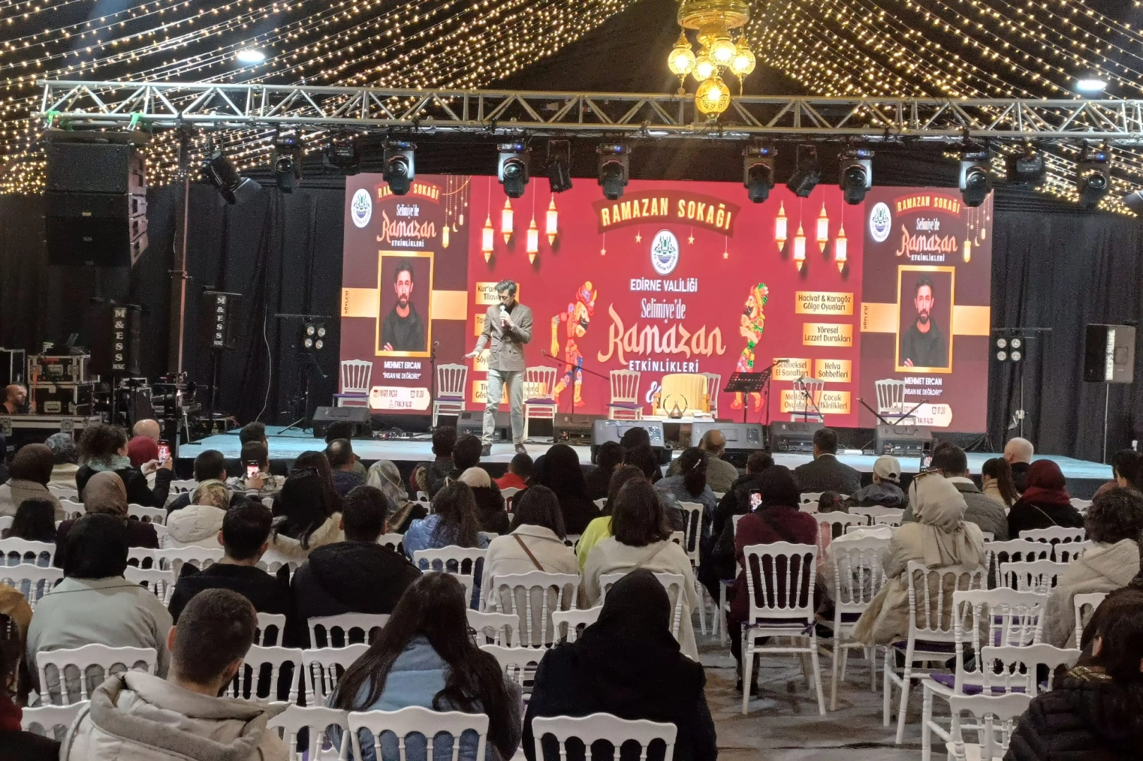 Edirne'de Ramazan Sokağı etkinlikleri kapsamında gerçekleştirilen “İnsan Ne Değildir?” başlıklı söyleşide, konuşmacı Mehmet Ercan, Ramazan ayının yalnızca aç kalmaktan ibaret olmadığını, insanın kendini yeniden inşa ettiği bir zaman dilimi olduğunu vurguladı.