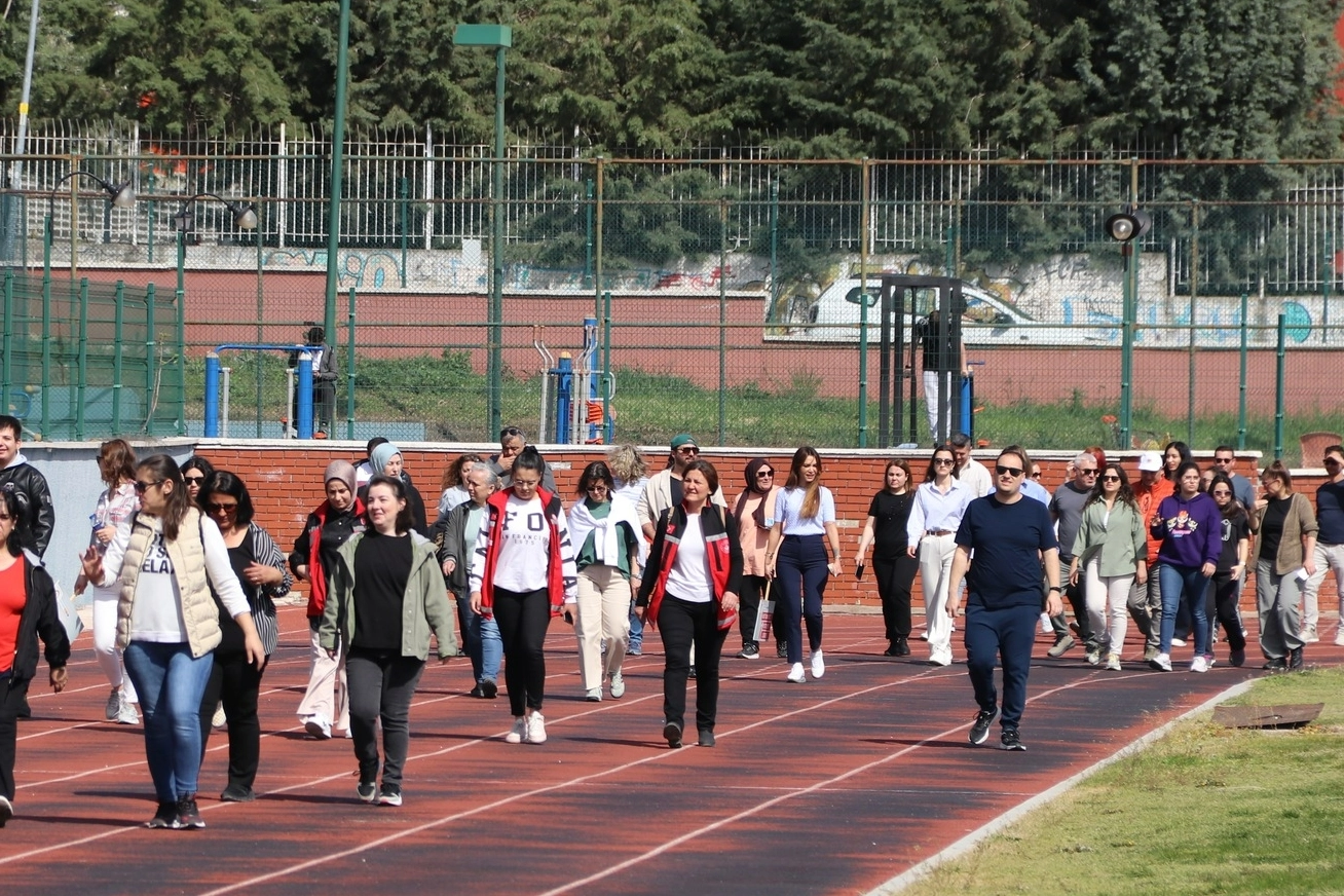 Kalp sağlığına dikkat çekilen pankart ile "sizin sağlığınız için buradayım" ve "şiddet sağlığa zararlıdır" yazılı dövizler taşıyan katılımcılar farkındalık yürüyüşü gerçekleştirdi.