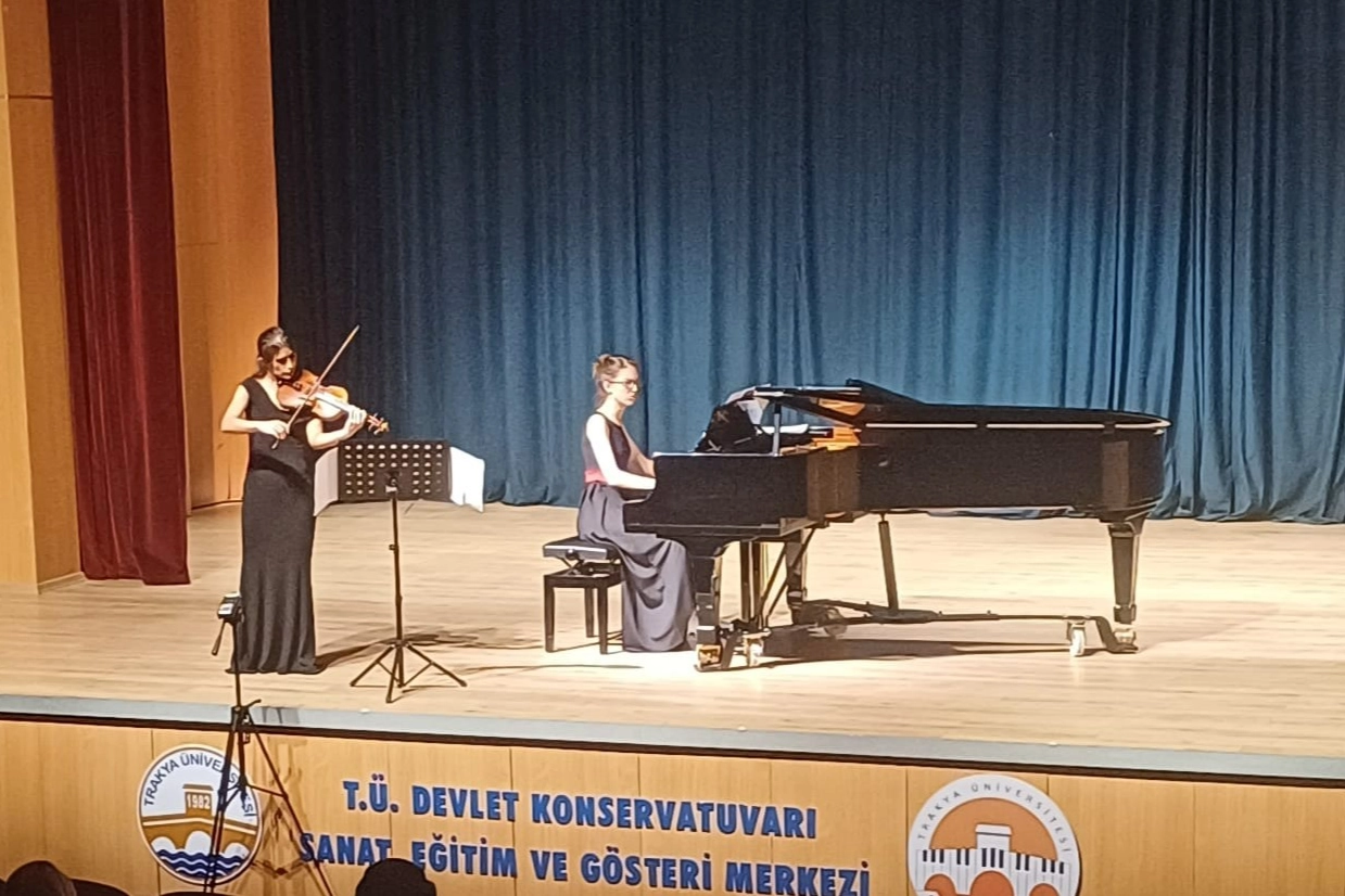 Edirne’de Trakya Üniversitesi (TÜ) Devlet Konservatuvarı Konferans Salonu’nda “Keman ve Piyano Resitali” gerçekleştirildi. Kemanda Özlem Duygu Bilmenoğlu ve piyanoda Bilge Su Karaca birçok eseri sanatseverler ile buluşturdu.