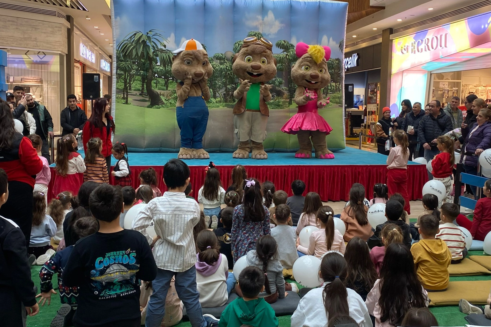AVM etkinlik alanında gerçekleştirilen gösteride Köstebekgiller karakterleri sahne alırken, müzikli ve interaktif bölümlerle çocuklar eğlenceli anlar yaşadı. Şarkılara eşlik eden, karakterlerle fotoğraf çektiren minikler, ara tatilin keyfini doyasıya çıkardı.