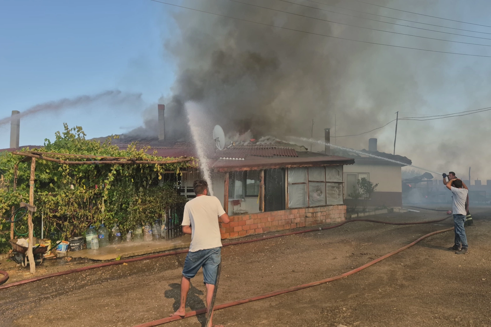 Rüzgarın etkisiyle alevler bahçedeki 2 ev ile yaklaşık 20 bin samanın bulunduğu depoya sıçradı.