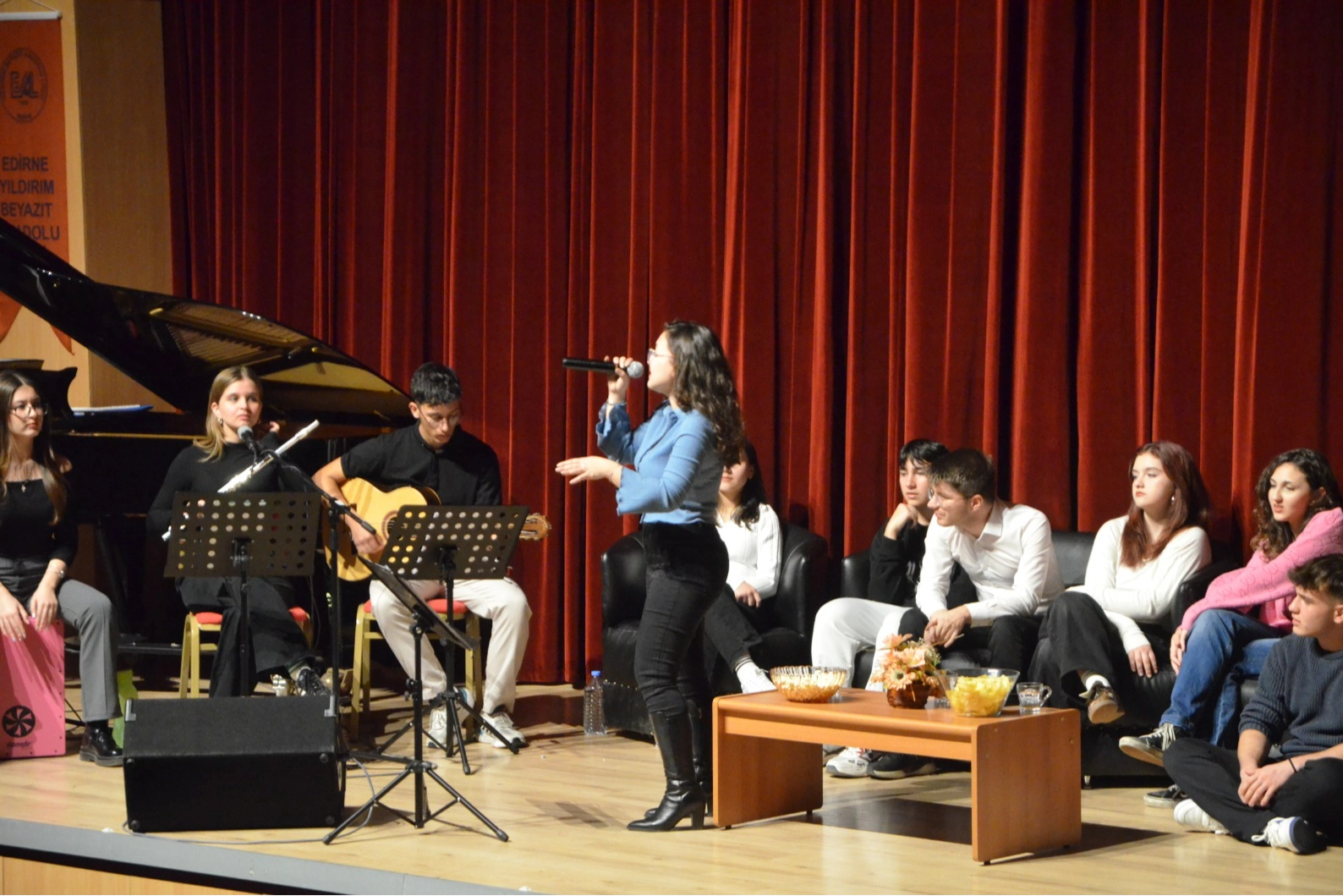 Edirne’de, Trakya Üniversitesi Devlet Konservatuvarı Konferans Salonu’nda Edirne Yıldırım Beyazıt Anadolu Lisesi (EAL) öğrencileri müzikli tiyatro oyunu sergiledi. “Hayatın Hikayesi” isimli oyunda, piyano, kajon, yan flüt ve gitar gibi müzik enstrümanları ile öğrenciler hem oyunu sahnelerken hem de sevilen şarkıları seslendirdi.