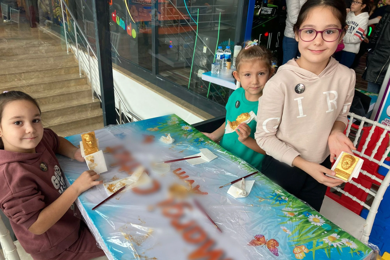Etkinlik alanında bir araya gelen çocuklar, boya ile Atatürk büstlerini renklendirerek kendi hayal güçlerini ortaya koydu. Kendi elleriyle boyadıkları Atatürk büstleriyle Atatürk sevgilerini ifade eden minikler hem eğlenceli hem de anlamlı bir gün geçirdi.