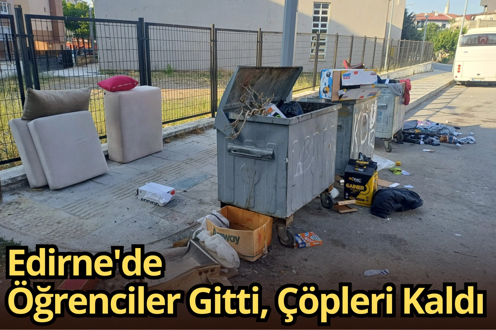 Edirne’de üniversitelerin yaz tatiline girmesiyle birlikte apart, yurt ve öğrenci evleri boşaldı. Ancak öğrencilerle birlikte taşınmayan birçok eşya, bu yıl da çöp konteynerlerinin etrafına bırakıldı. Çalışmayan küçük ev aletlerinden kullanılabilir mobilyalara kadar pek çok eşyanın doğrudan çöpe atılması çevre sakinlerinin ve yetkililerin dikkatinden kaçmadı.