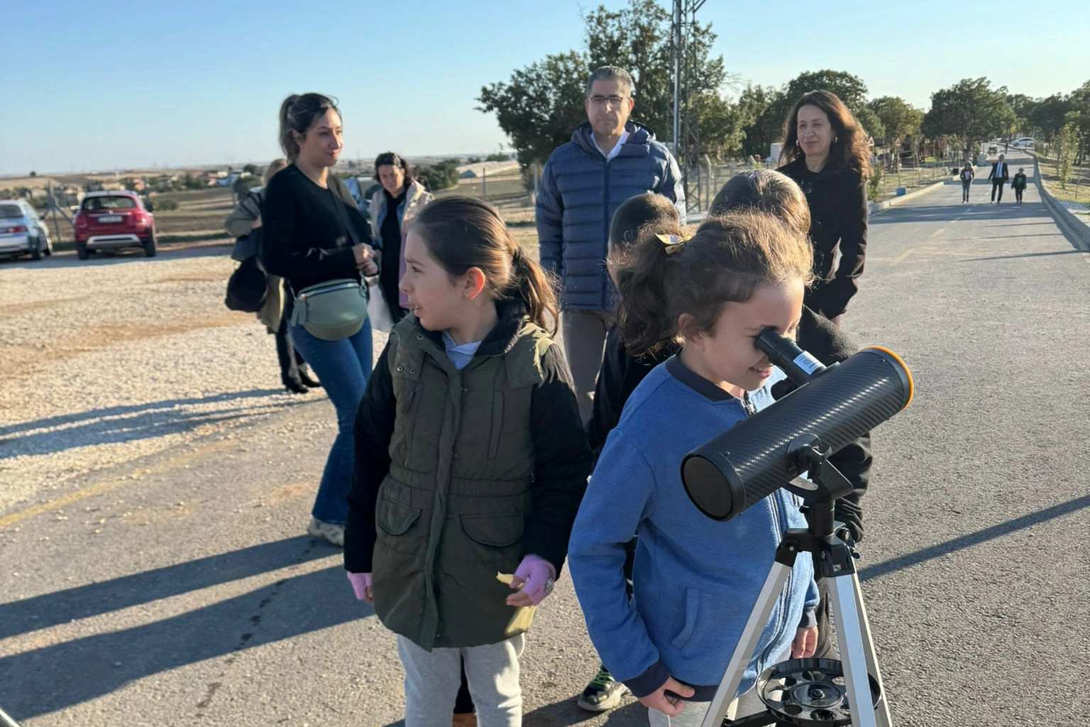 Astronomi tarihi hakkında bilgi alan öğrenciler daha sonra teleskopla gökyüzünü gözlemledi.
