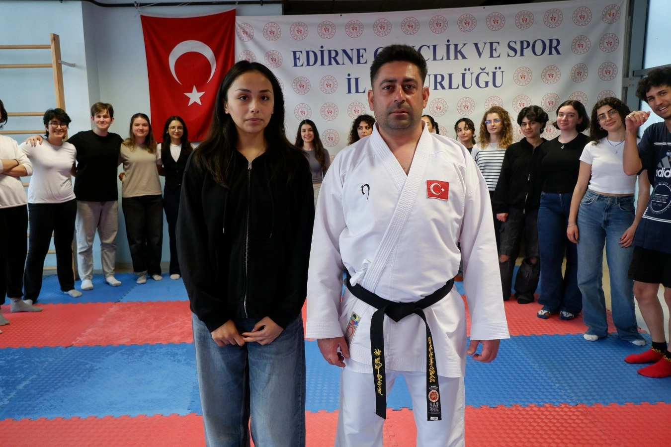 Trakya Üniversitesi Sağlık Kültür ve Spor Daire Başkanlığı Trakya Tıp Öğrencileri Birliği'nin hayata geçirdiği 'Öz Savunma' kursunda eğitimler başladı. Antrenör Mustafa Akkaya eşliğinde Edirne Olimpik Yüzme Havuzunda bulunan spor kompleksinde gerçekleştirilen yakın savunma kursuna katılan öğrencilere, kendilerini savunabilmeleri için pratik bilgiler öğretiliyor.