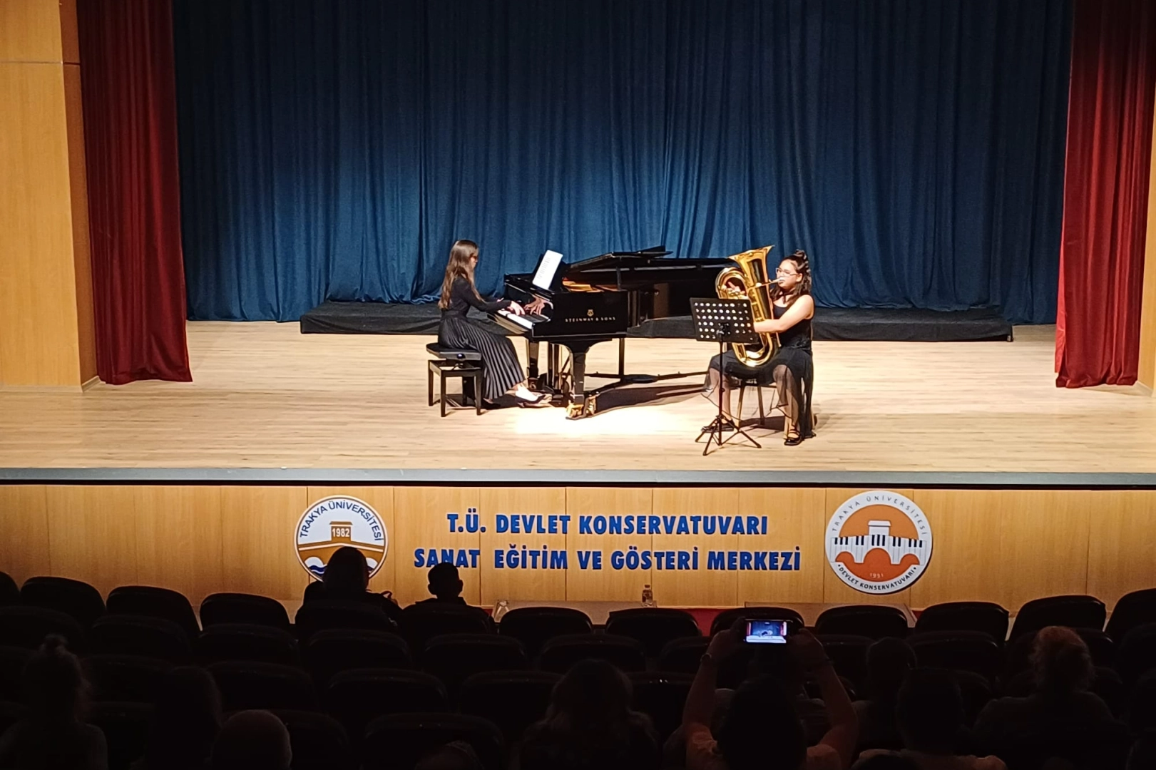 Edirne'de bugün Trakya Üniversitesi (TÜ) Devlet Konservatuvarı Gösteri Salonu'nda, Devlet Konservatuvarı Üflemeli Çalgılar öğrencileri konser verdi.