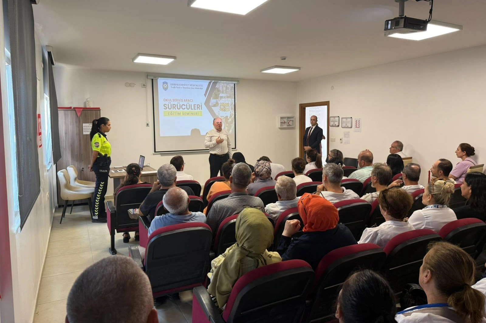 İl Milli Eğitim Müdürlüğünün İl Emniyet Müdürlüğü koordinasyonunda Edirne Çocuk Trafik Eğitim Parkı'nda gerçekleştirdiği programda, şoförlere trafik kuralları, güvenli sürüş kriterleri ve öğrencilerin emniyetini sağlamaya yönelik konularda bilgiler verildi.