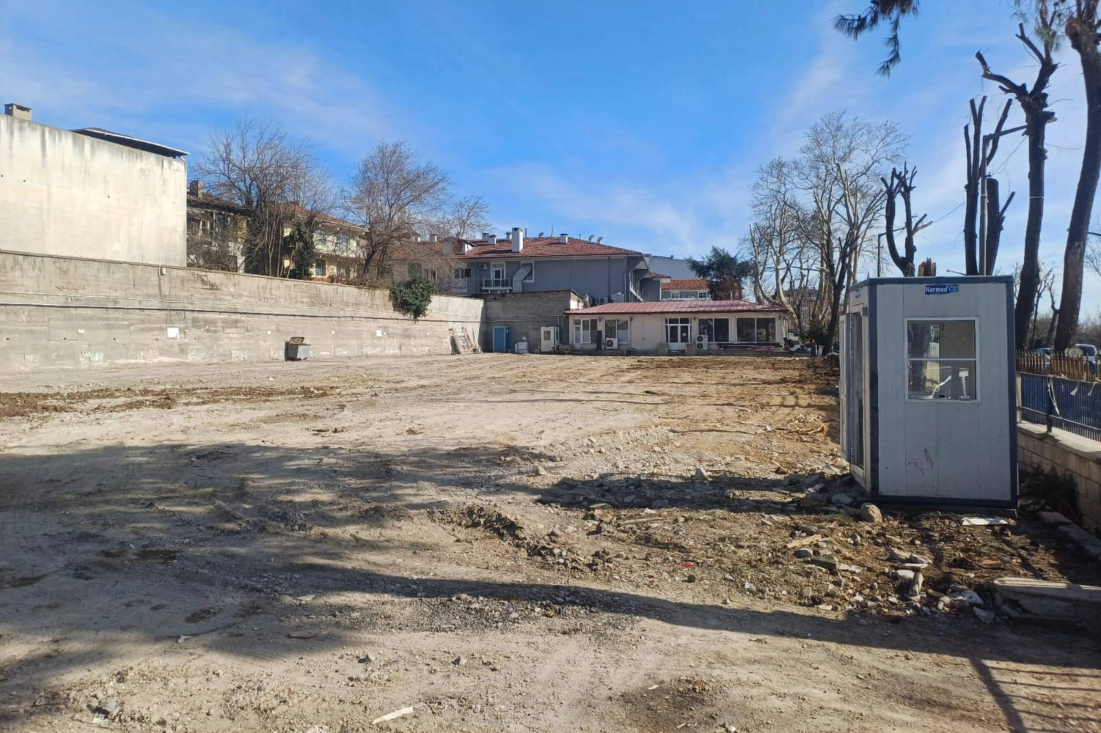 Bina içerisinde gerçekleştirilen hafriyat çalışmalarının ardından yapı geçtiğimiz günlerde tamamen yıkıldı. Yıkım işlemlerinin tamamlanmasının ardından alanda zemin düzleme çalışmaları gerçekleştirildi.