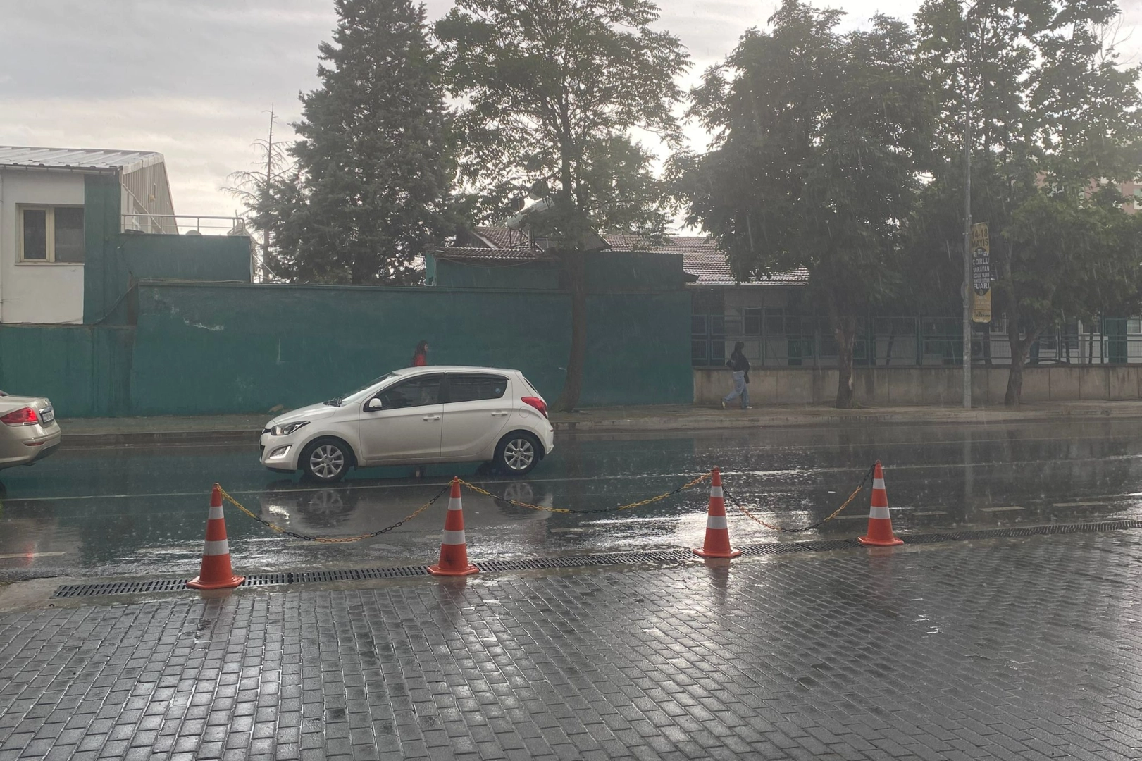 Sağanak yağışa hazırlıksız yakalanan vatandaşlar, çevrelerinde iş yerlerine ve kapalı alanlara sığınırken; cadde ve sokaklarda da su birikintileri oluştu.