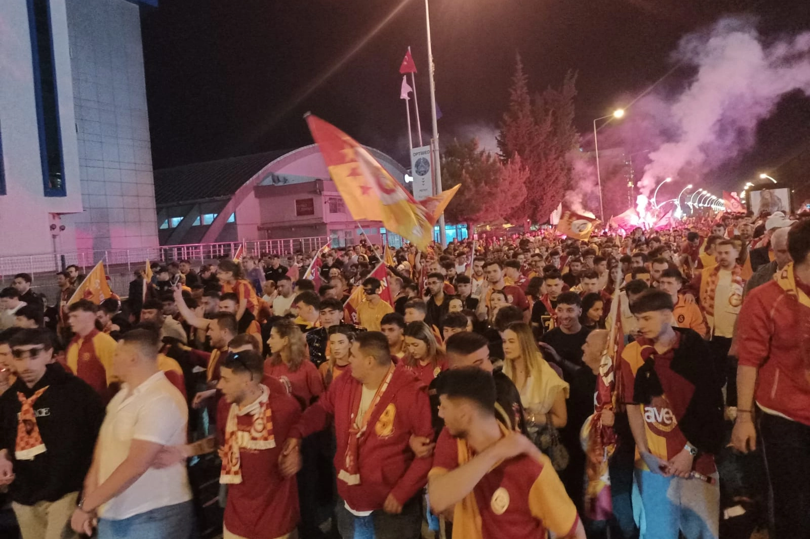 Gecenin adeta aydınlandığı kentte sarı kırmızı kortej yürüyüşü Saraçlar Caddesi'nde tamamlanacak. Kutlamalar, caddede devam edecek.