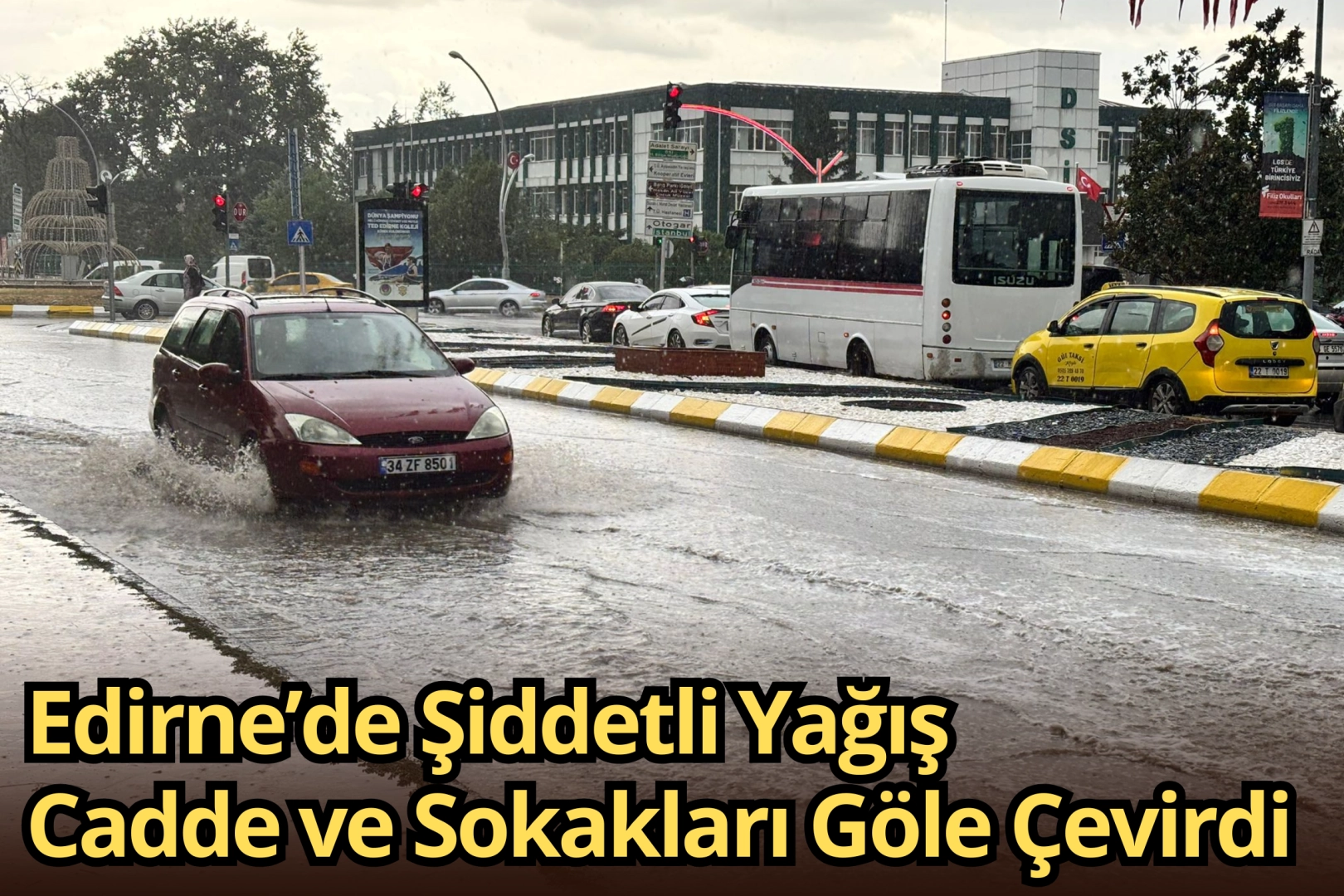 Edirne’de öğle saatlerinde başlayan şiddetli yağış, kısa sürede cadde ve sokakları göle çevirdi. Cadde ve sokaklarda biriken yağmur suyu, araçların ilerlemesini güçleştirirken vatandaşlara da zor anlar yaşattı.