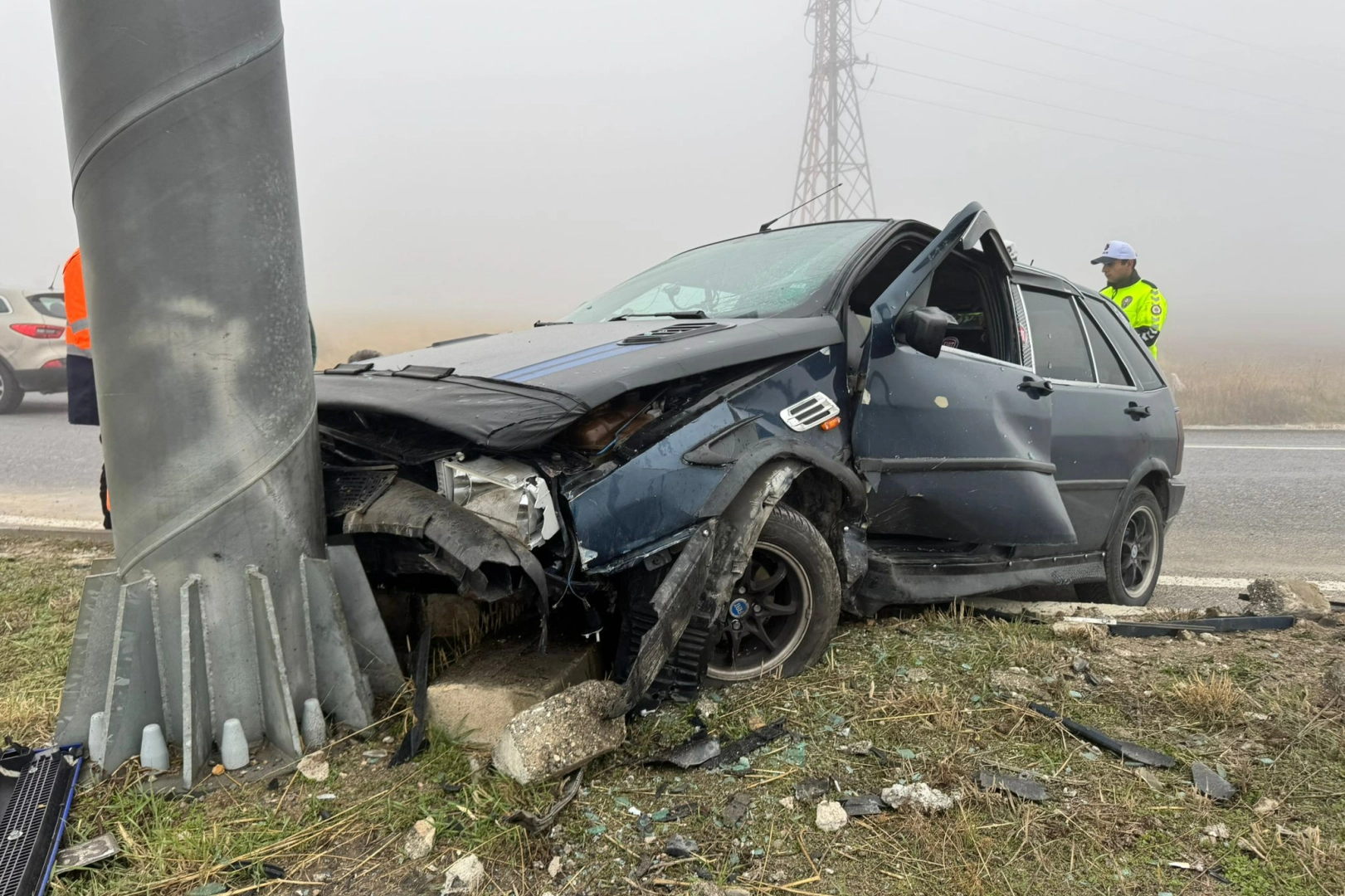 Edirne’de etkili olan sis görüş mesafesini 30 metreye kadar düşürdü. Görüş mesafesinin düştüğü yerlerden biri olan Kırklareli kavşağında meydana gelen kaza yürekleri ağza getirdi.