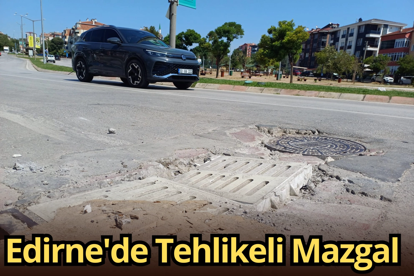 Edirne’de, 15 Temmuz Demokrasi ve Cumhuriyet Parkı’nın hemen alt kısmında bulunan İlhami Ertem Caddesi üzerinde yer alan bir mazgal tehlike oluşturuyor. Yolun hasar görmesiyle birlikte kırılan mazgal ızgarası yerinden çıkmış durumda.