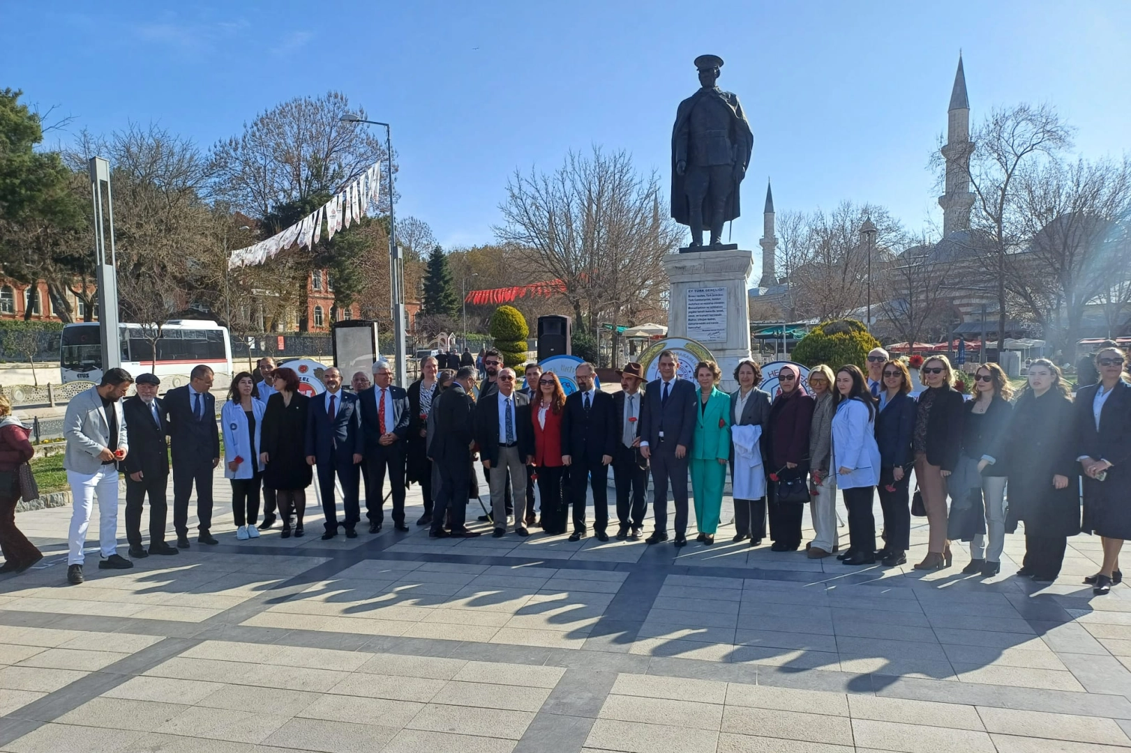 Edirne'de bugün Saraçlar Caddesi girişinde bulunan Atatürk Anıtı, sağlık personellerine ev sahipliği yaptı. 14 Mart Tıp Bayramı dolayısı ile gerçekleştirilen tören, çelenk sunumu ile başladı.