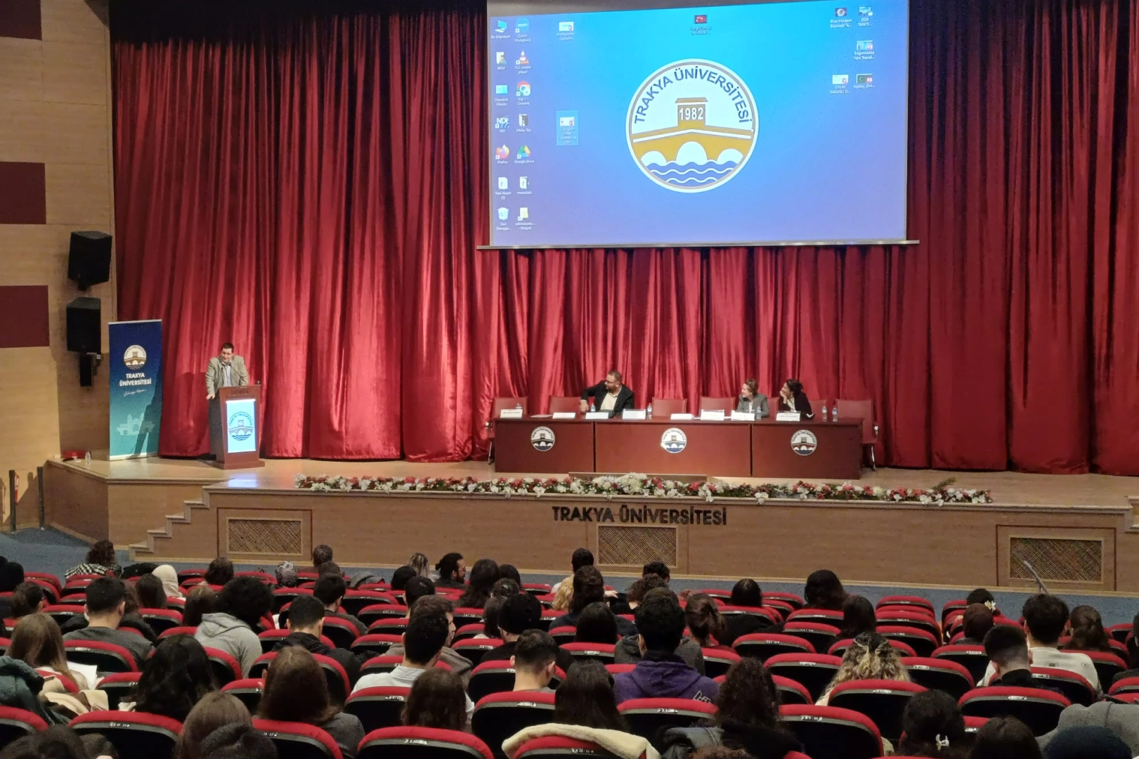 Edirne’de Trakya Üniversitesi (TÜ) Tıp Fakültesi 2’inci sınıf öğrencileri bugün, Tıpta Profesyonellik dersini Balkan Kongre Merkezi’nde gerçekleştirdi. Öğrenciler, tıp mesleğinde aktif görev alan kişililer ile bir araya geldi. Konuşmacılar mesleki profesyonelliği öğrencilere, yaşadıkları olaylar ve vakalar üzerinden aktardı.