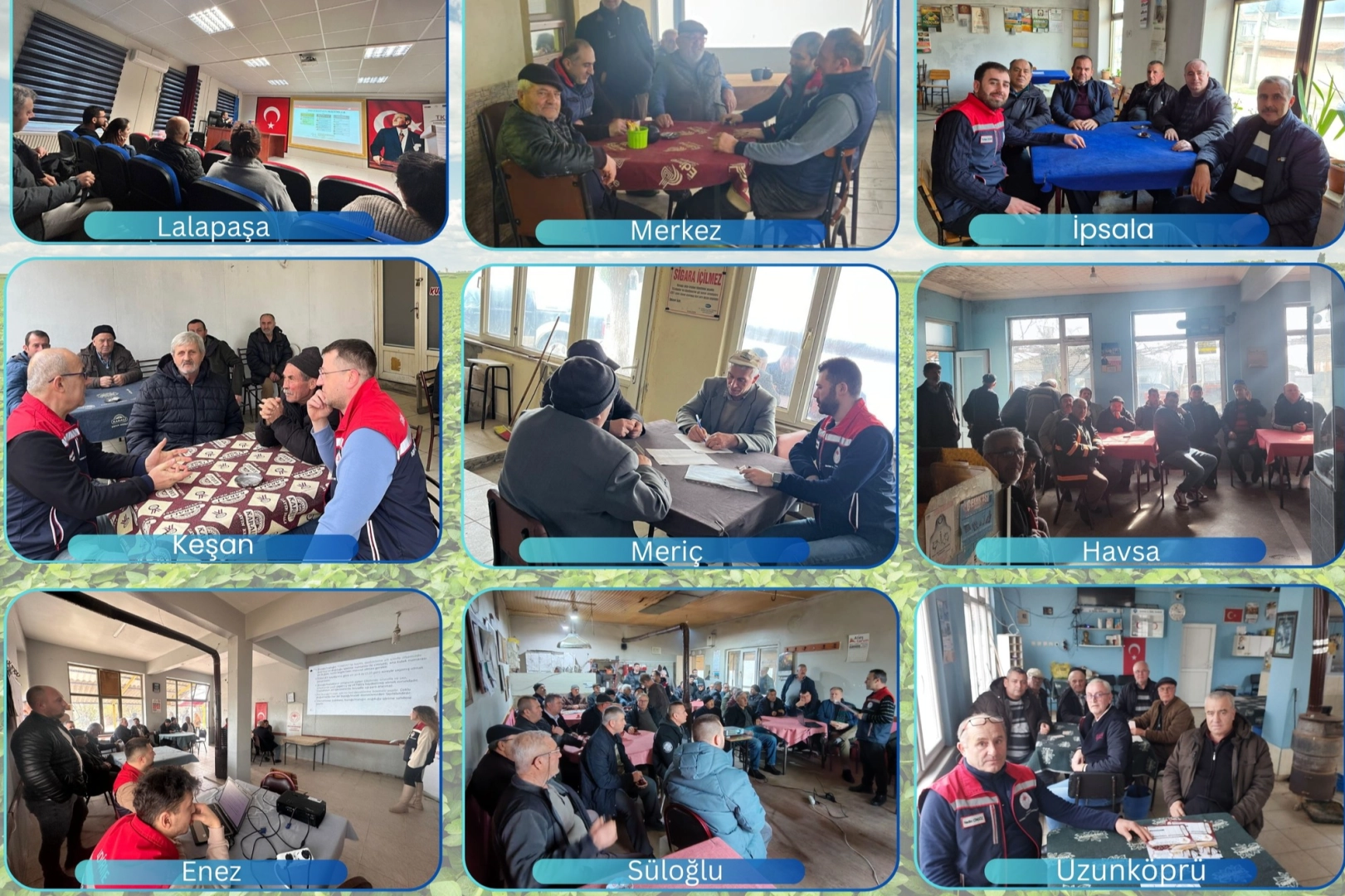 Edirne İl Tarım ve Orman Müdürlüğü tarafından merkez ve ilçe köylerinde düzenlenen toplantılarda üreticilere; üretim planlaması, tarımsal desteklemeler, Çiftçi Kayıt Sistemi (ÇKS) işlemleri, genel tarım sayımı, hayvan ve bitki sağlığı uygulamaları, tarım sigortaları (TARSİM) ile B-Reçete konularında kapsamlı bilgiler verildi.