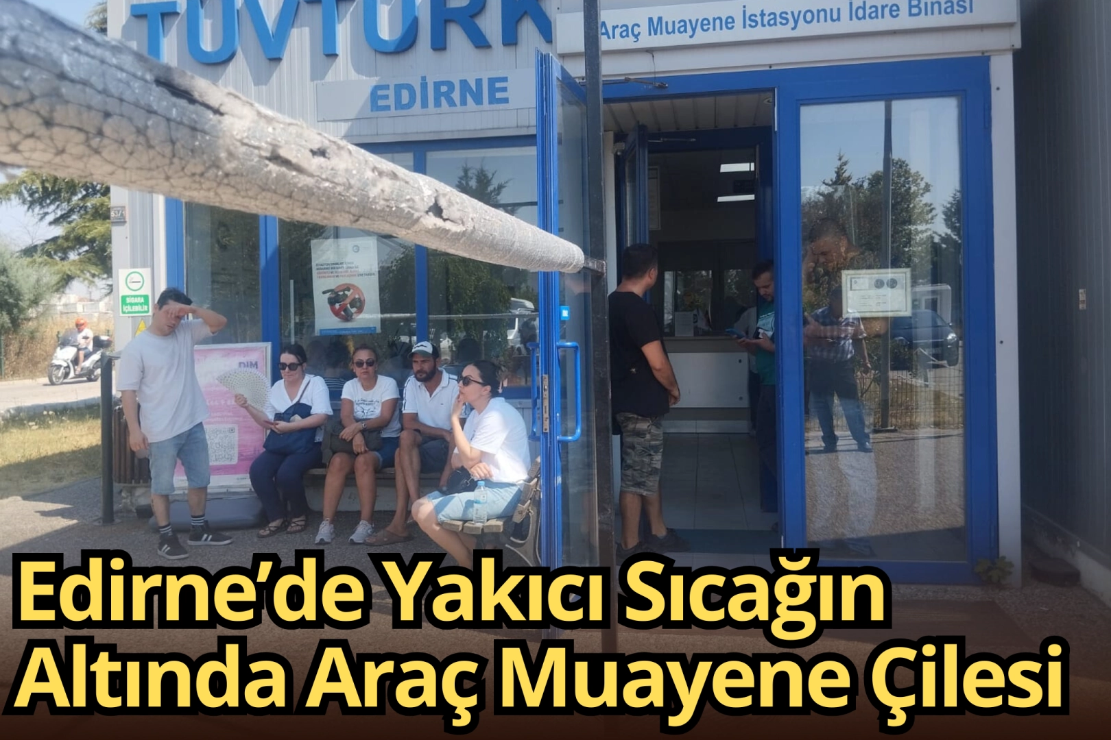 Edirne’de aracının muayene süresi biten vatandaşlar için muayene yaptırmak adeta eziyete dönüşmüş durumda. 43 dereceyi bulan sıcakta aracını muayene yaptırmak için gelen vatandaşlar, randevulu olmalarına rağmen yoğun bir kalabalıkta beklemeye başlıyorlar.