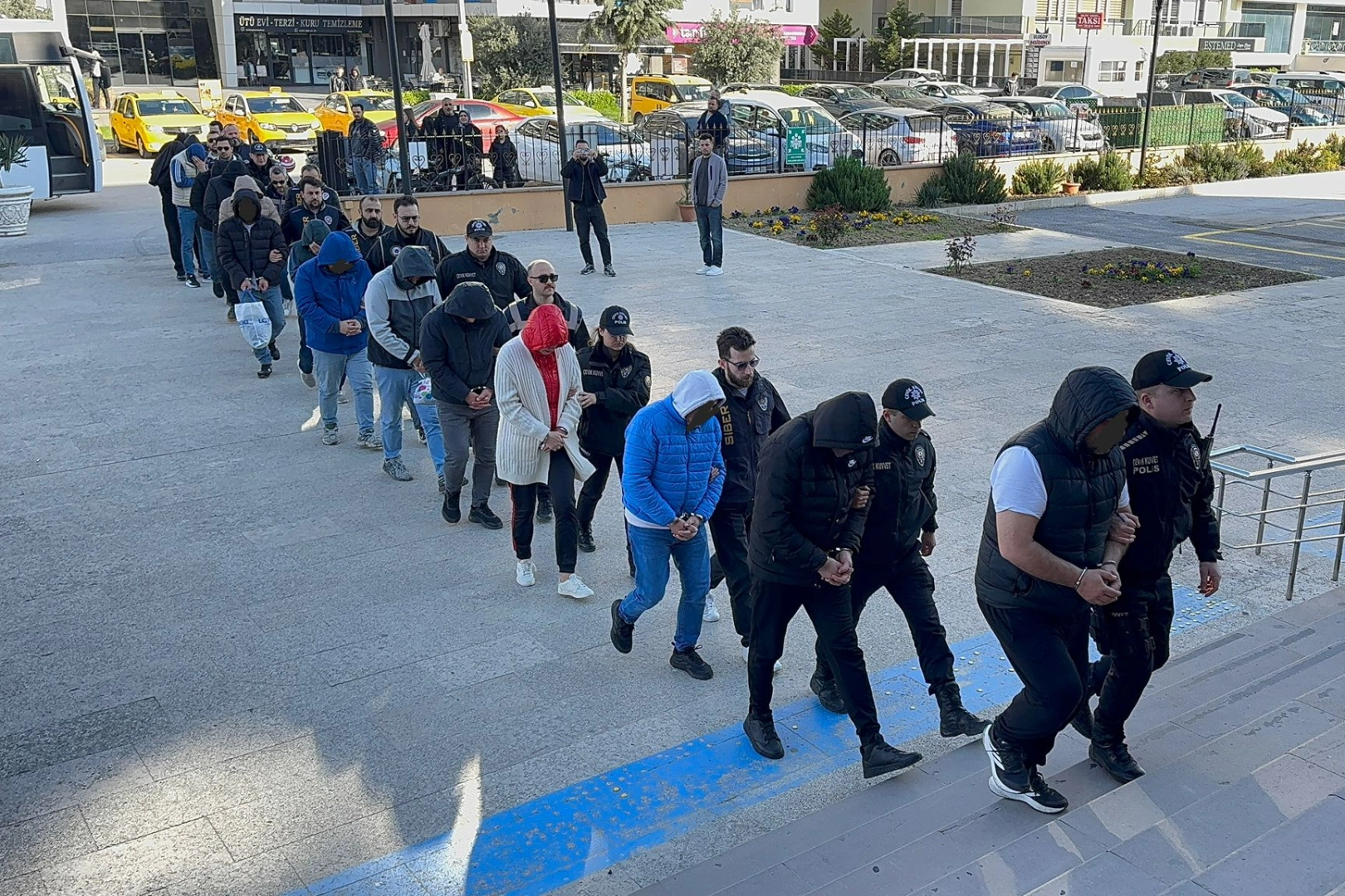 Ekiplerin Edirne ve İstanbul’da eş zamanlı olarak gerçekleştirdiği operasyonlar çerçevesinde gözaltına alınan 16 şüphelinin emniyetteki sorguları tamamlandı. Sağlık kontrolünden geçirilen şüpheliler, sabah saatlerinde geniş güvenlik önlemleri altında Edirne Adliyesi’ne getirildi.