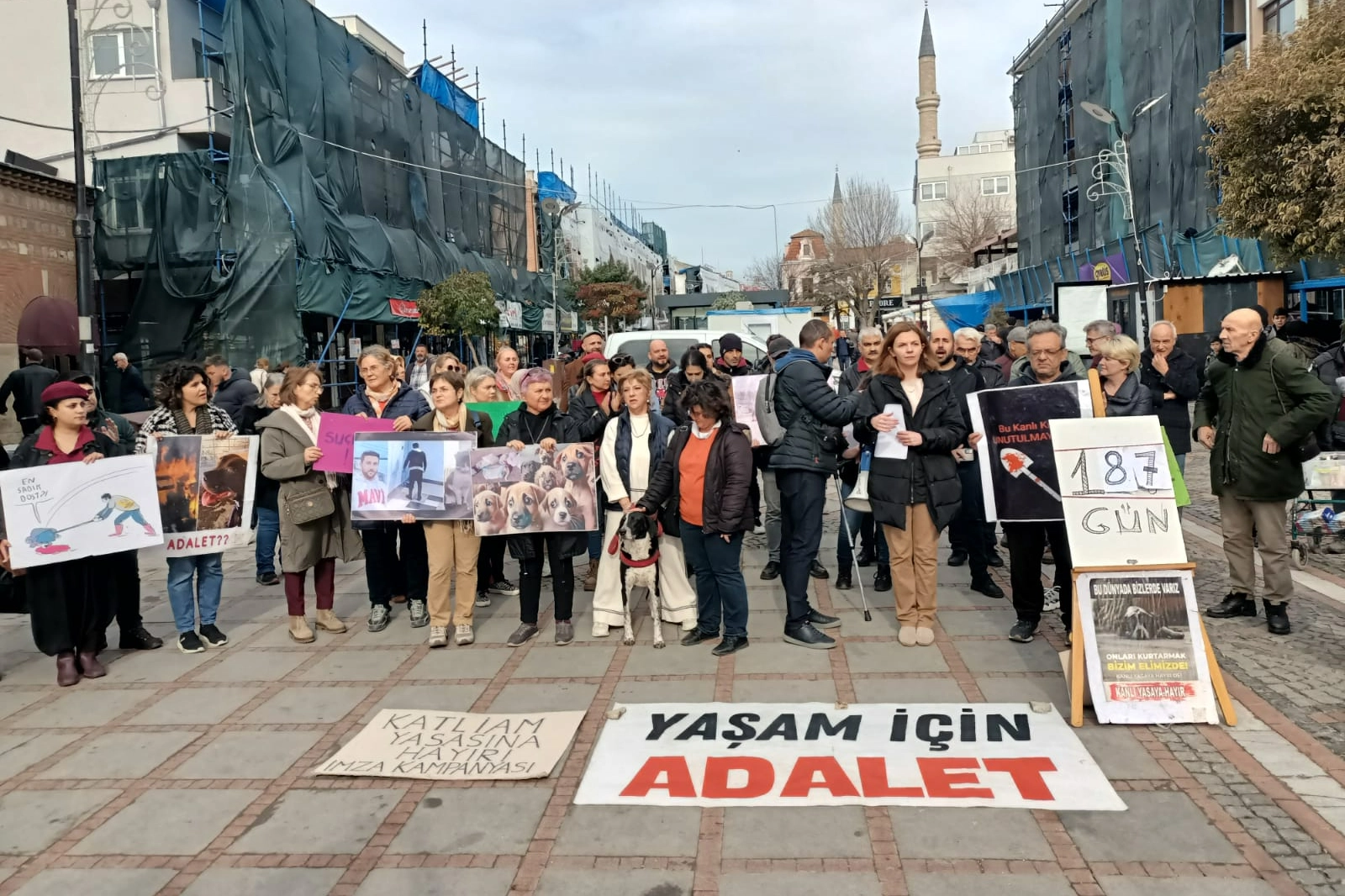 Edirne Kent Konseyi, 22 Dost Eli Derneği, EDSHAYKO Derneği ve yaşam hakkı savunucuları, Türkiye’nin 81 ilinde AYM’nin Hayvanları Koruma Kanunu’nda Değişiklik Yapılmasına Dair Kanunu iptal etmesi için düzenlenen basın açıklamasına Saraçlar Caddesi’nden katıldı.